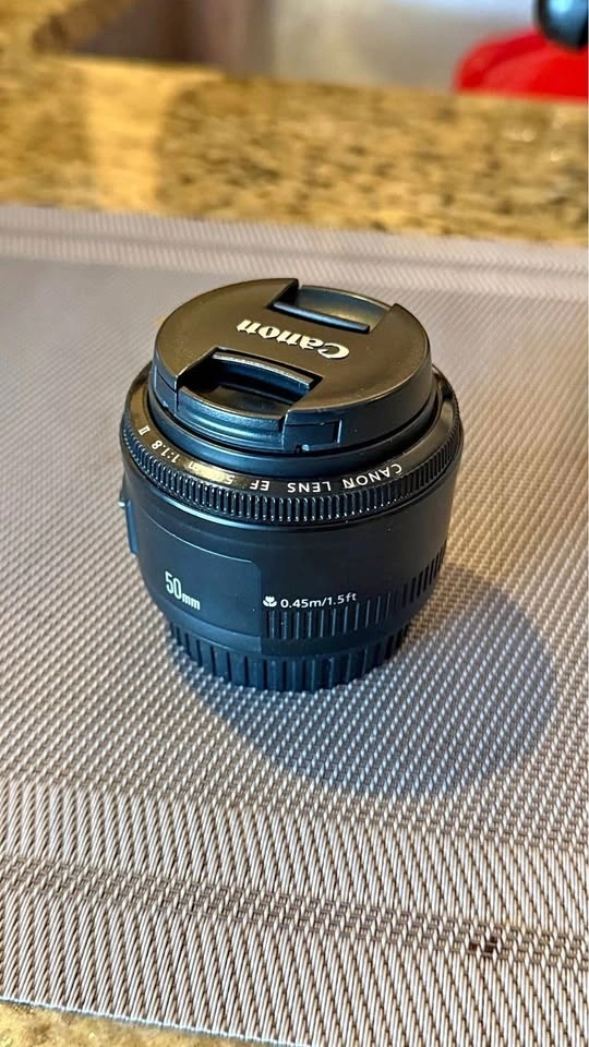 The must-have lens for every Canon owner! This 50mm f/1.8 II is great for portraits on a budget. The wide f/1.8 aperture is amazing for shooting in low light without a flash. Creates that professional "blurry background" (bokeh) that makes portraits pop. Condition: Excellent. Glass is clear, no scratches or fungus. Autofocus is snappy. Works on both Crop (APS-C) and Full Frame Canon DSLRs. Compact, lightweight, and incredibly sharp. Includes front and rear caps.