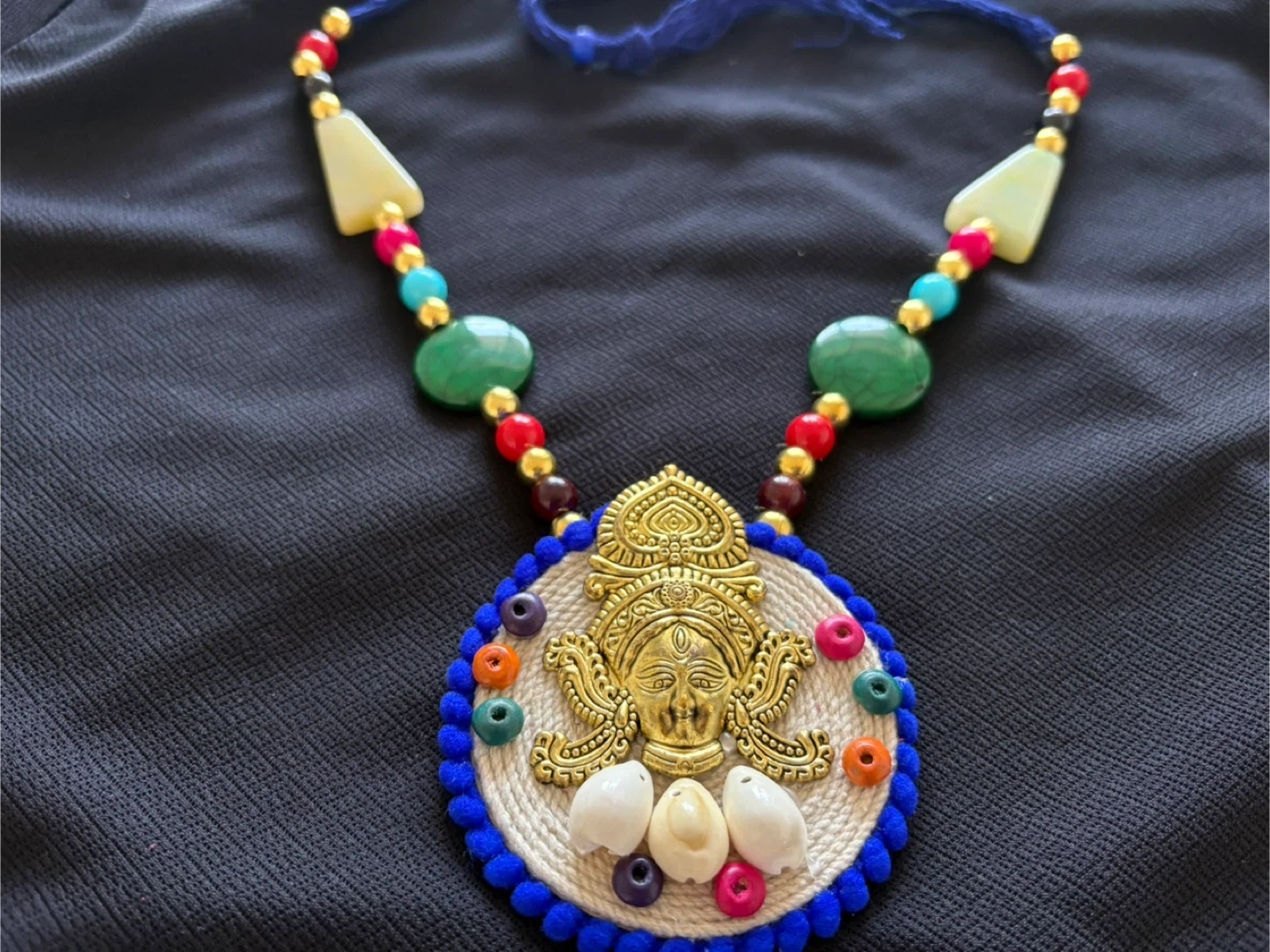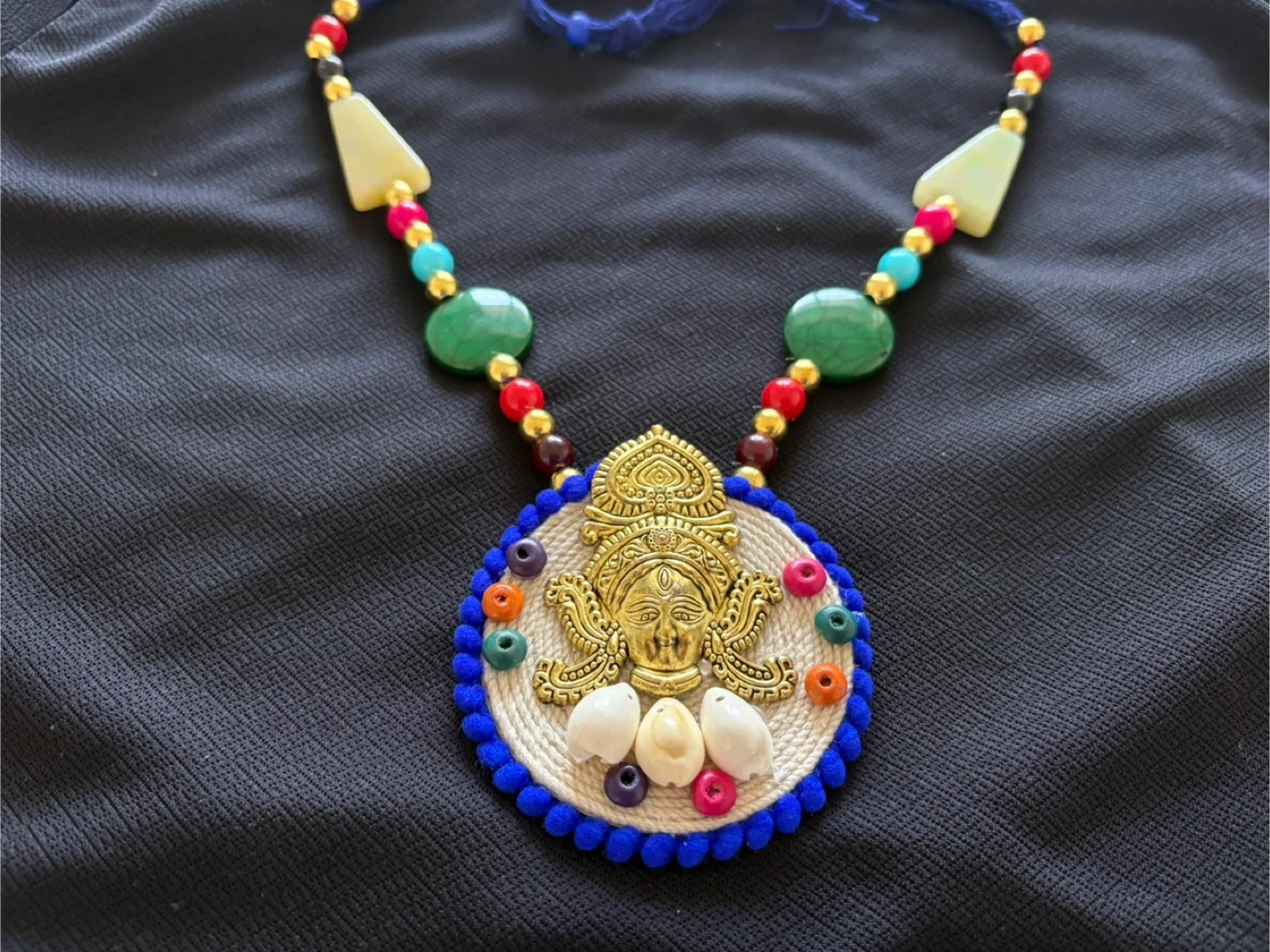 There is a handmade neckpiece and a neckpiece