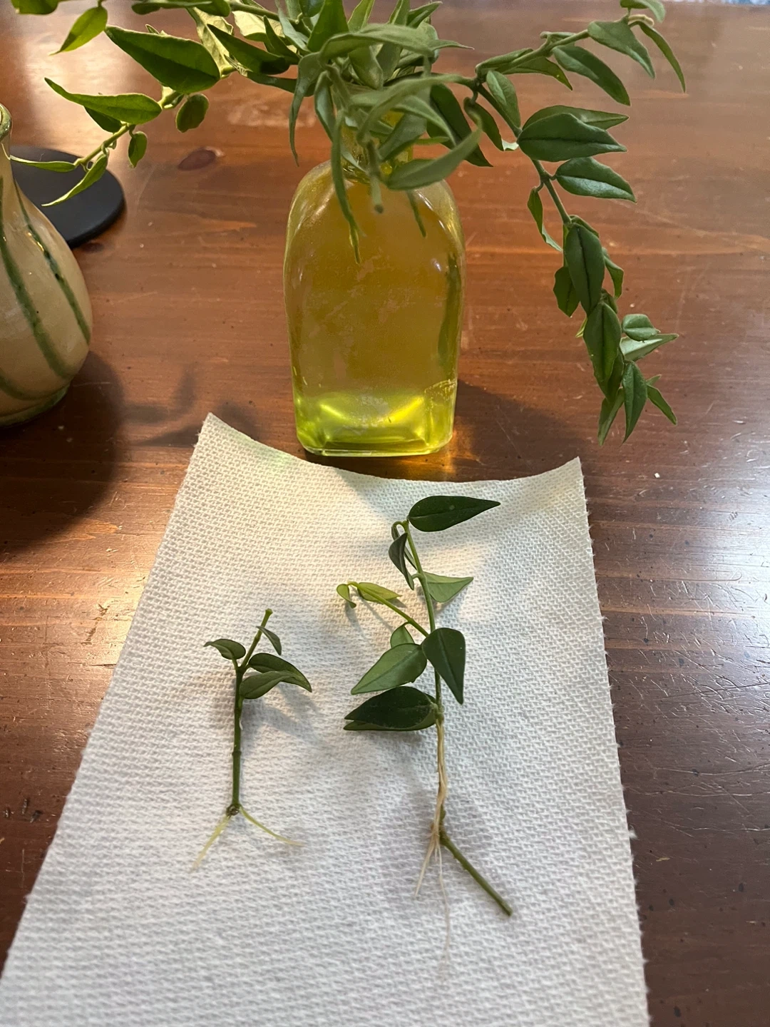 Two plant cuttings ready for propagation. They've developed roots and are eager to grow into new plants. Simply pot them in some soil and watch them thrive! Mother plant is shown in photos along with the flowers it gives. Blooms early and abundantly compared to all other Hoyas.