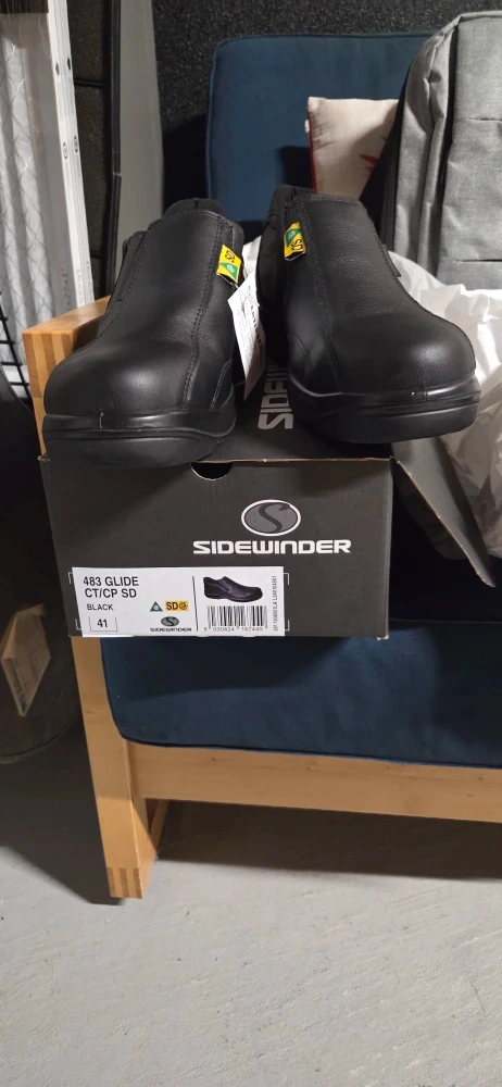 10Selling a pair of Sidewinder 483 Glide CT/CP SD safety shoes in black. They are size 41. Comes with the original box!