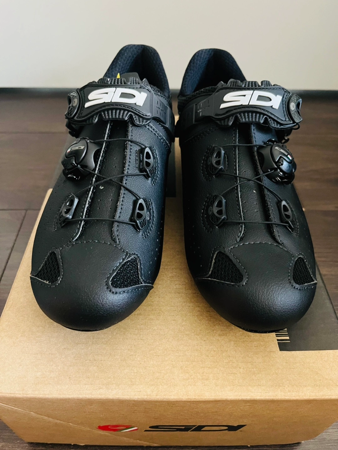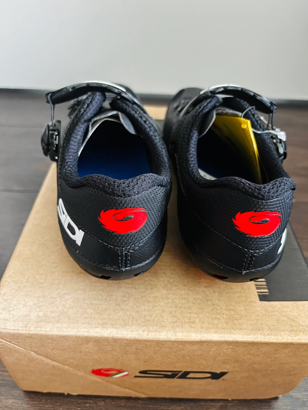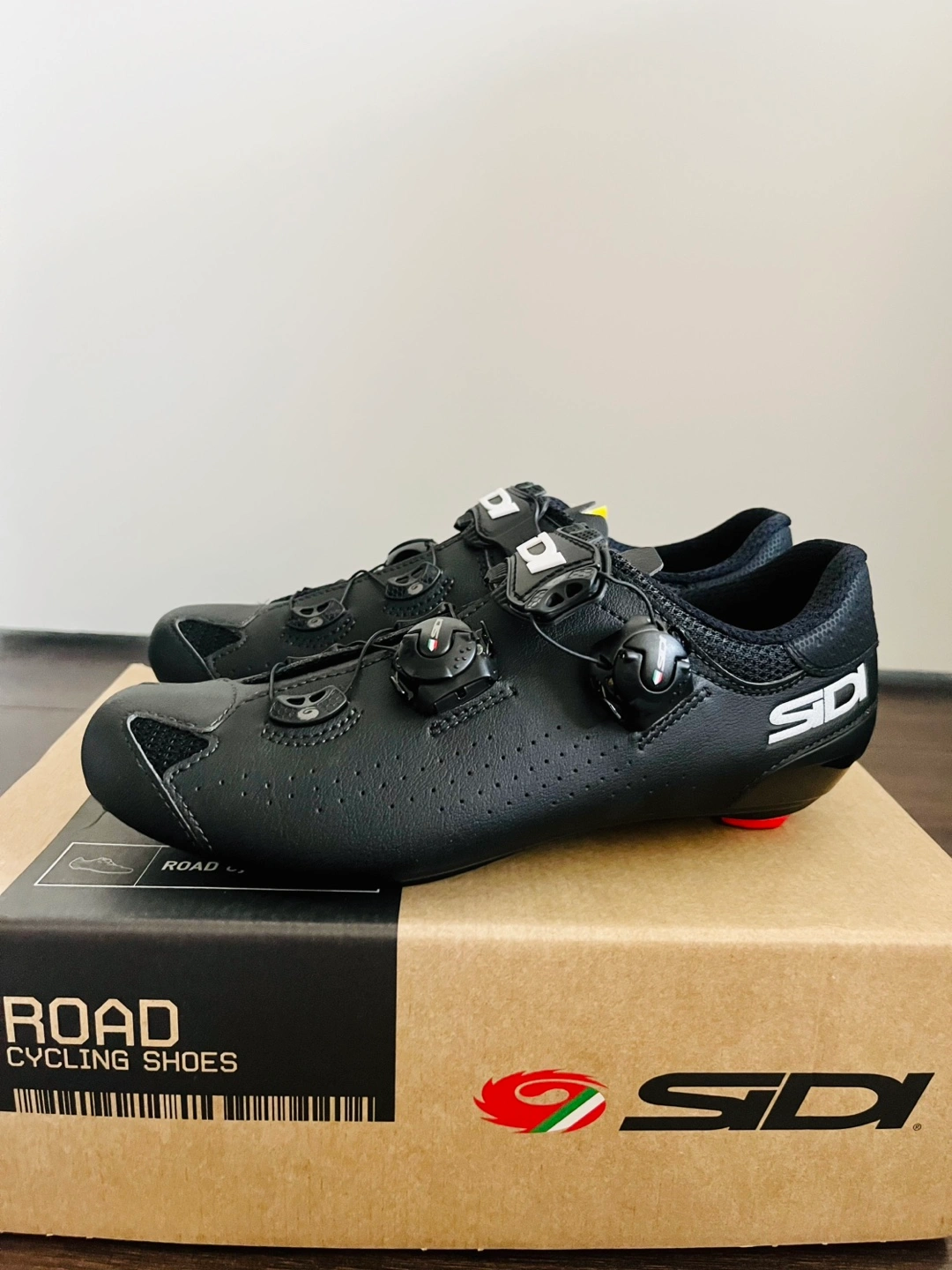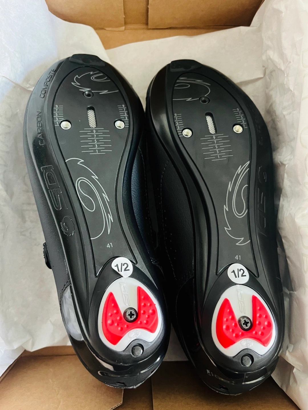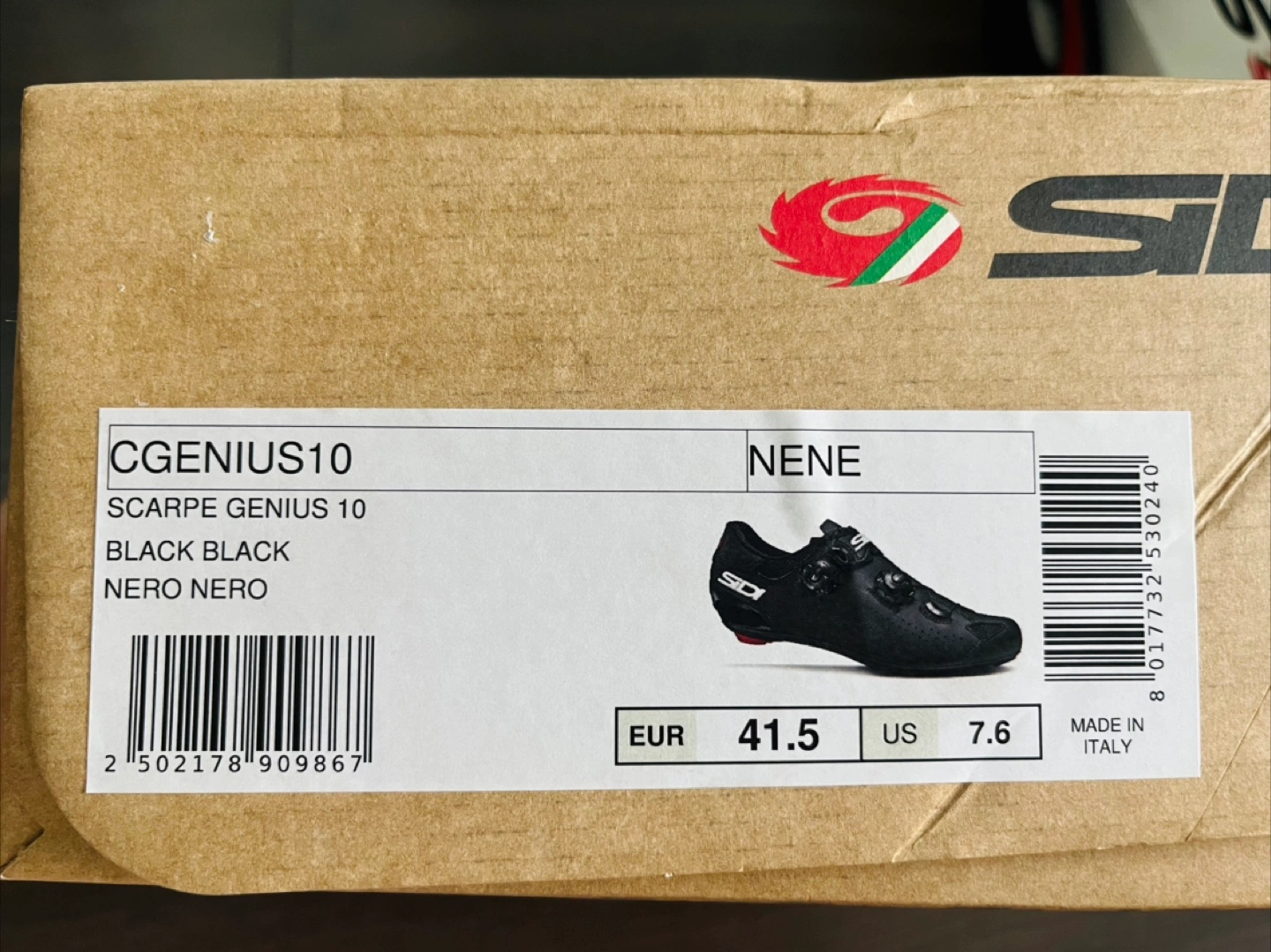 A pair of SIDI Genius 10 road cycling shoes in black! They are brand new and come with the original box. Men’s US size 7.6 (EUR 41.5) Made in Italy