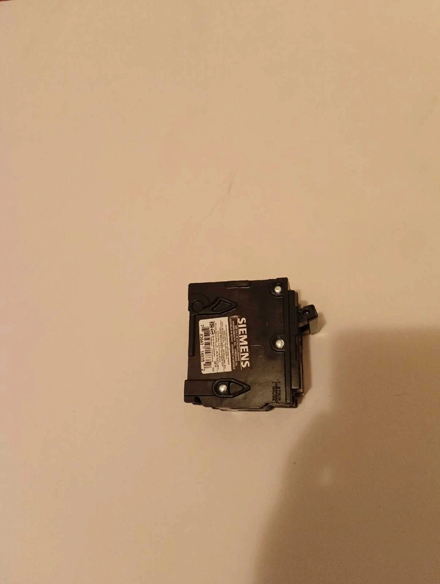 27Siemens 15 Amp double circuit breaker in good working condition. This breaker is designed to protect your electrical circuits from overloads or short circuits. Additional Specs: * Type: Circuit Breaker * Amperage: 15A * Poles: Double * Brand: Siemens I've always thought electricity had a certain 'spark' to it, and this circuit breaker is no exception! It's ready to find a new home where it can continue its important job. Remember, if the ad's up, it's still available!