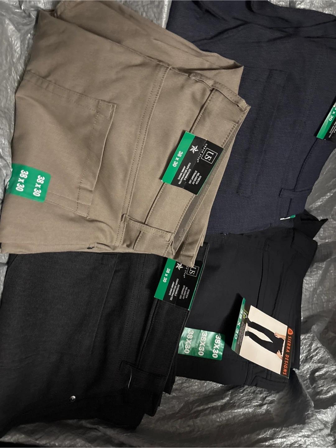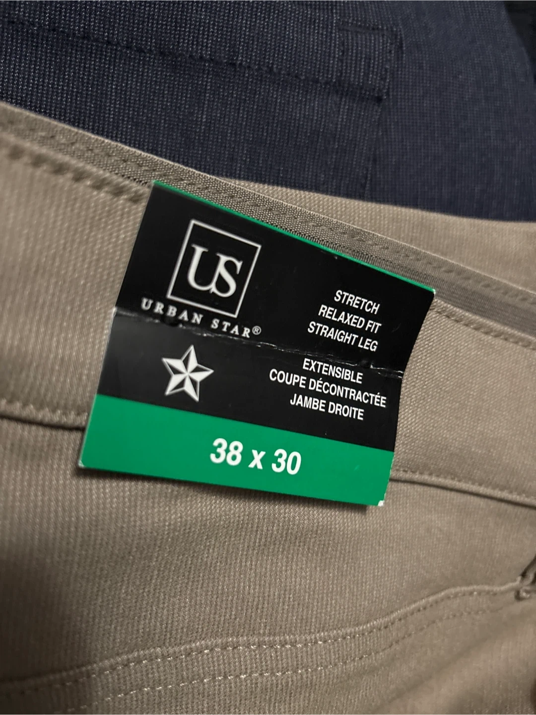 78$10 each I have a selection of pants available in size 38x30. There are Sierra Designs pants made from recycled plastic bottles, and Urban Star stretch relaxed fit straight leg pants. All are new with tags!