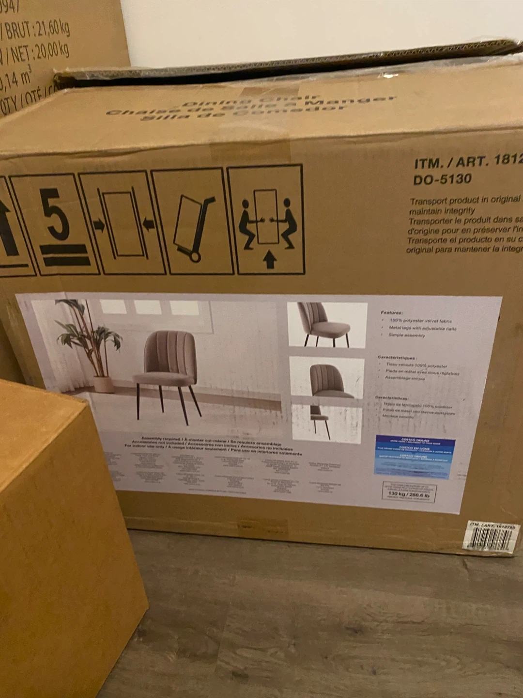 This dining chair features a 100% polyester velvet fabric. It has metal legs with adjustable nails for simple assembly. It's suitable for indoor use only.