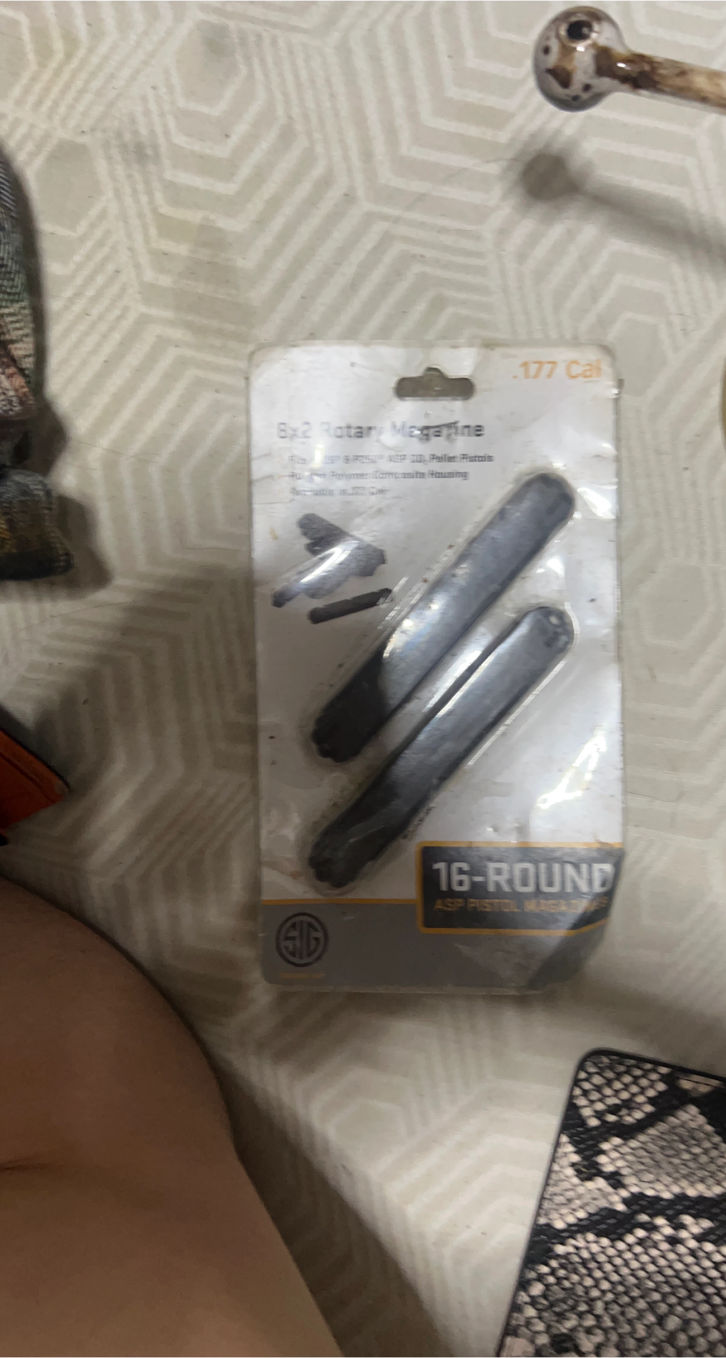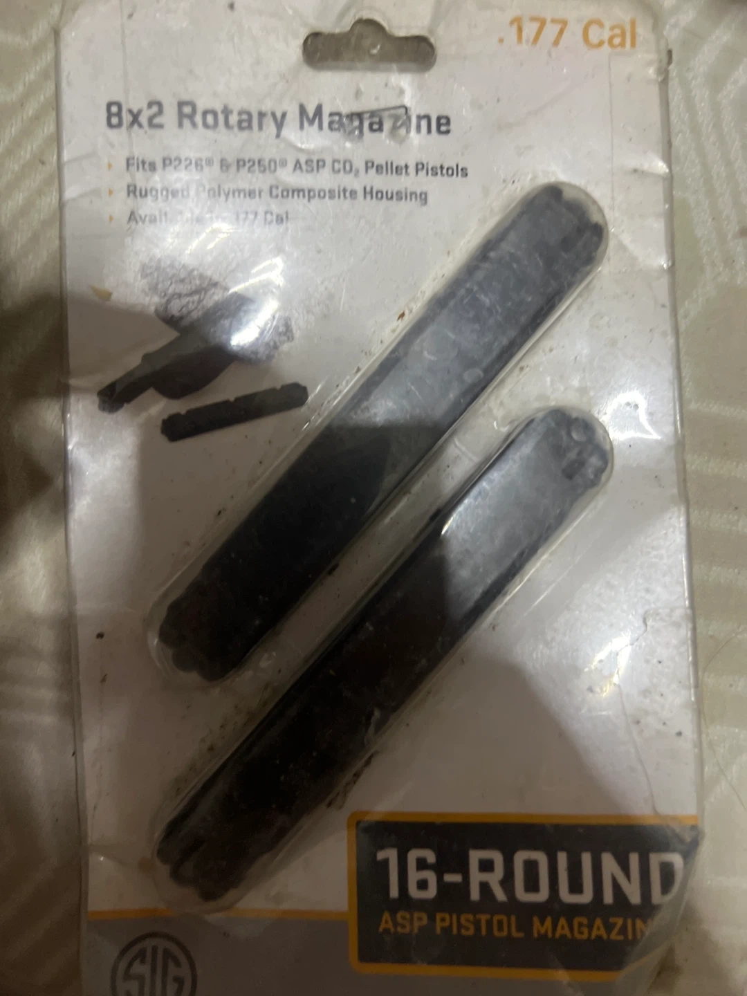 97Selling a Sig Sauer 8x2 Rotary Magazine for .177 Cal pellet pistols. This magazine fits P226 and P250 ASP CO2 pellet pistols. It features a rugged polymer composite housing and holds up to 16 rounds. Pick up only