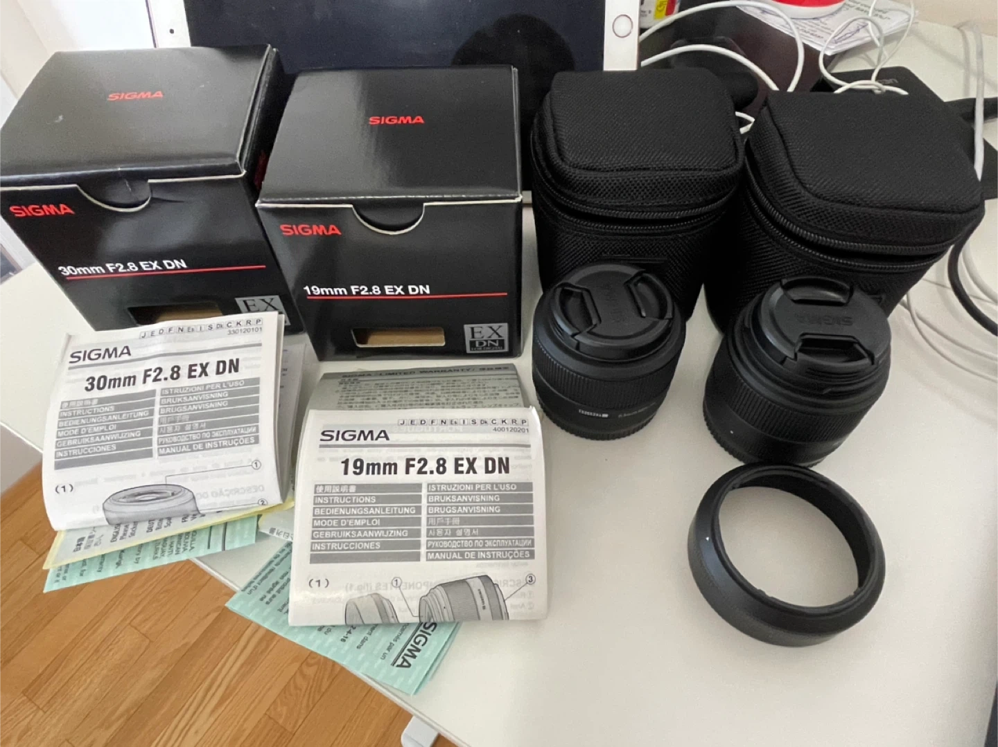 Selling a Sigma 30mm F2.8 EX DN lens and a Sigma 19mm F2.8 EX DN lens! Both come with their original boxes and instructions. Also included are lens cases for safekeeping. Great for photography enthusiasts!