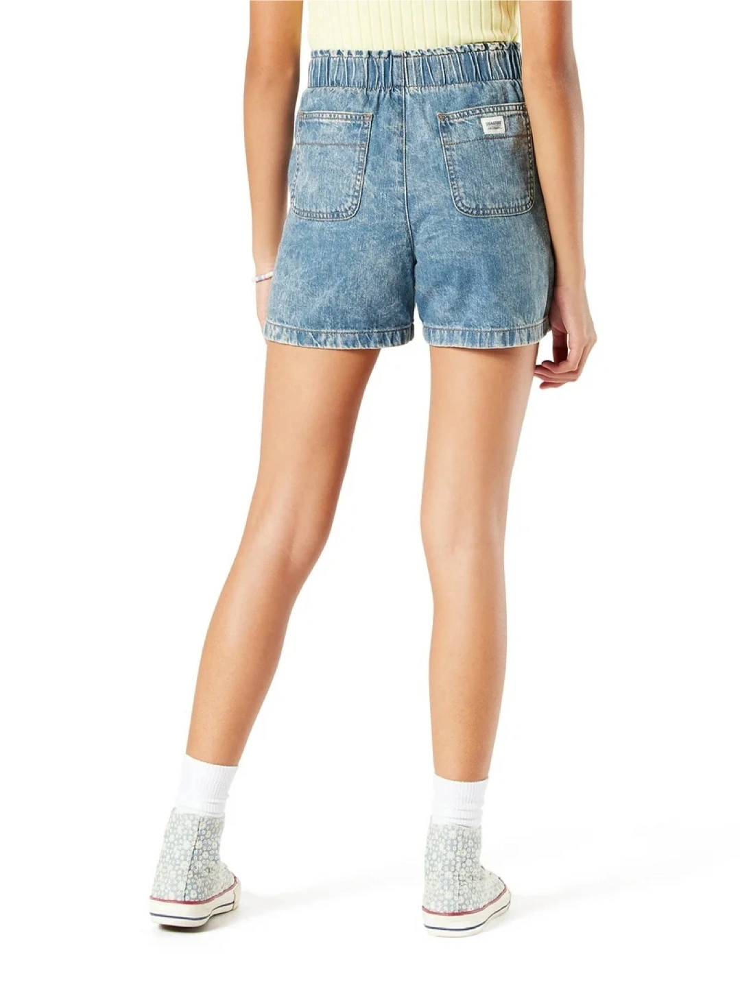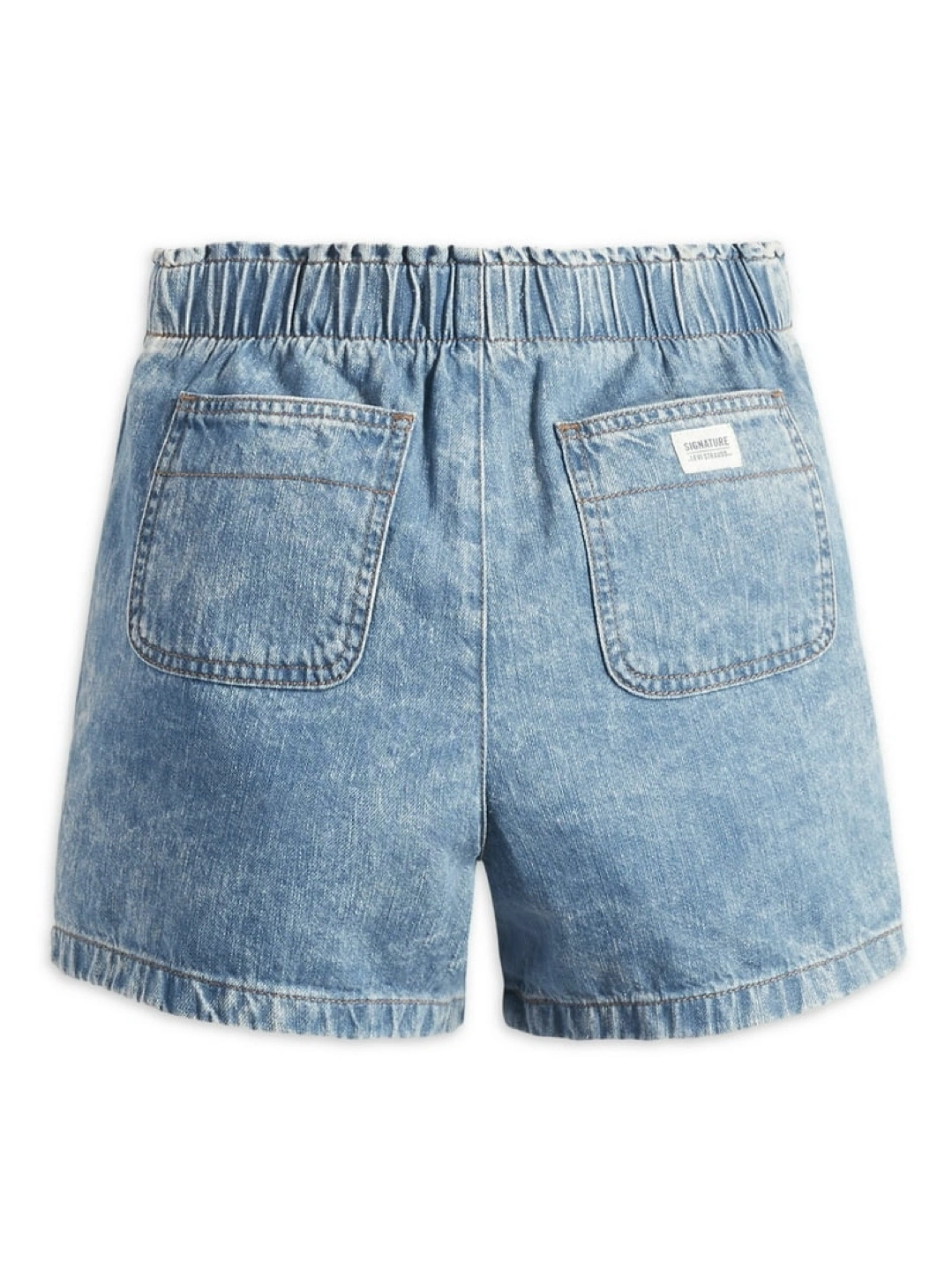 These are Signature by Levi Strauss & Co. denim shorts! They feature an elastic waistband and a light wash. Perfect for a casual, comfy look! Features: Pockets, Side Pocket Clothing Size Large Brand: Levi Strauss Signature Fabric Content : 100% Cotton