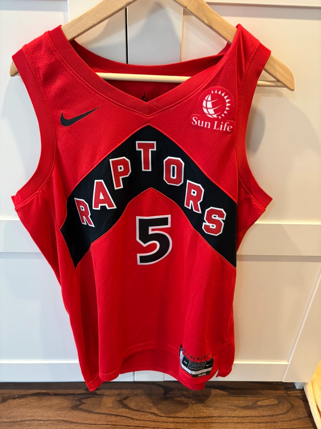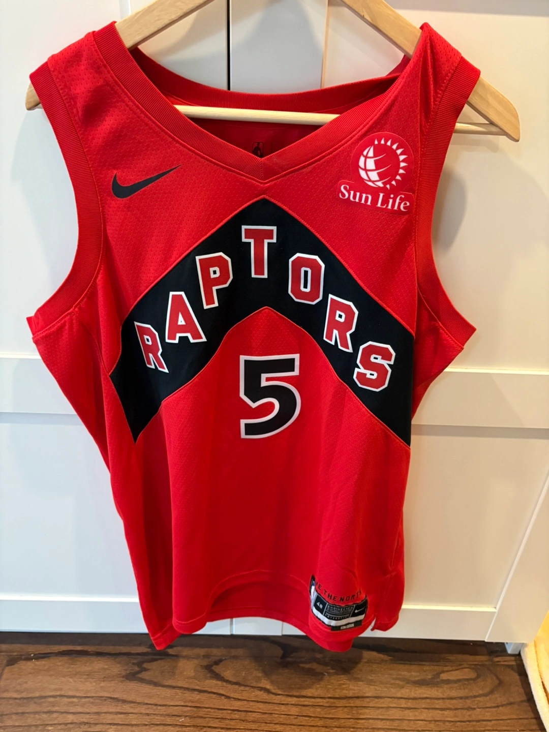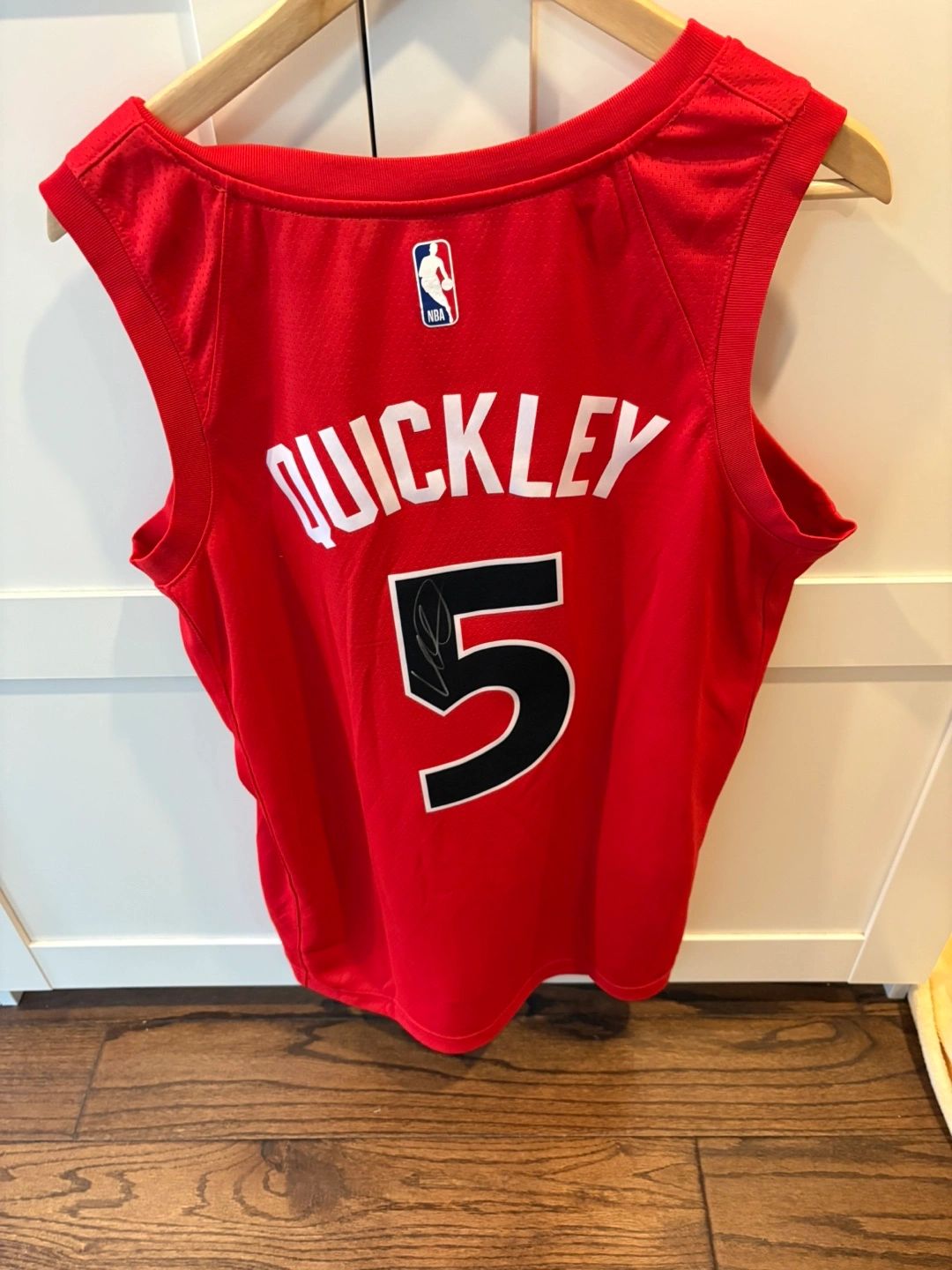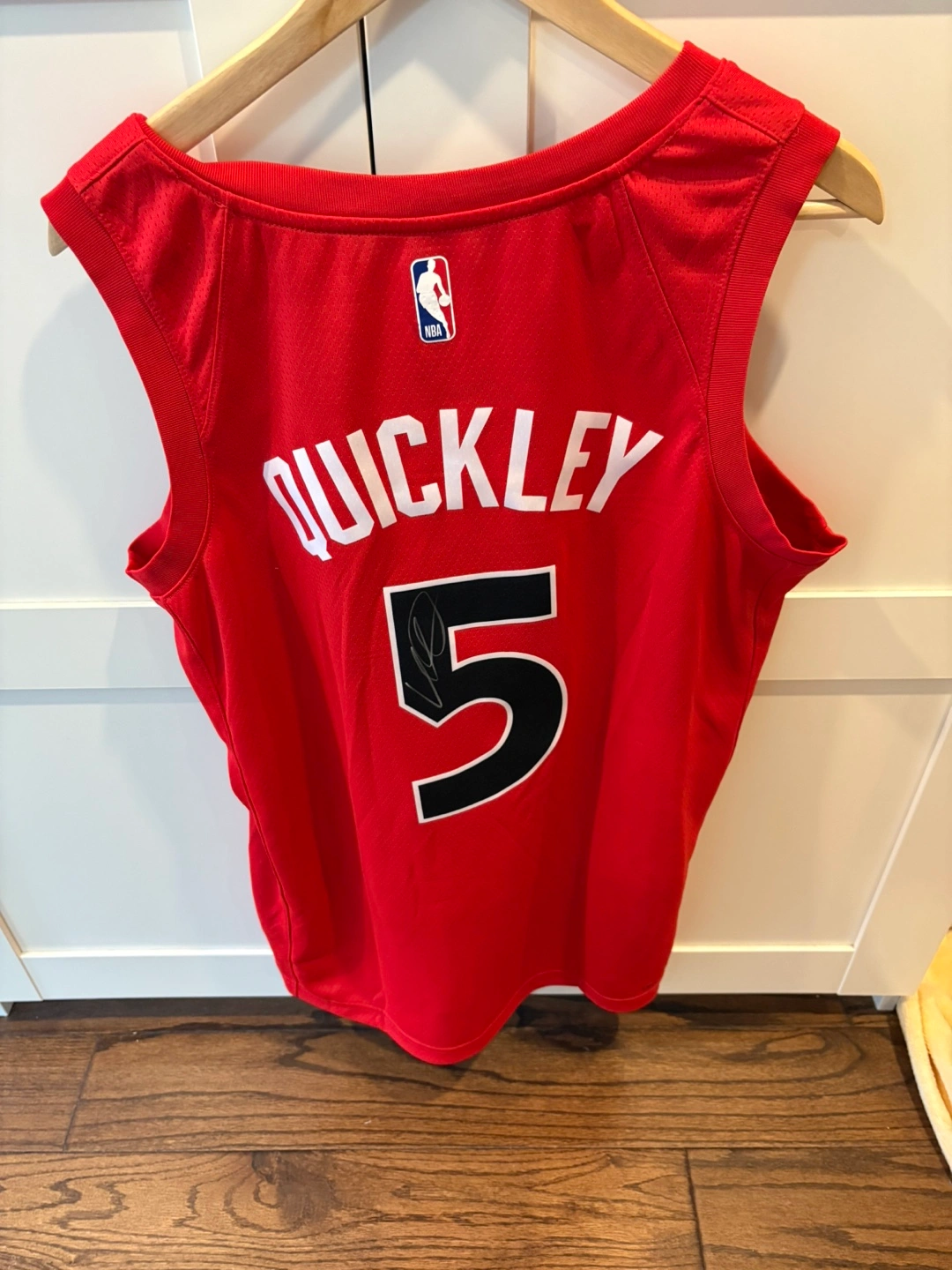 Selling brand new signed red Nike Raptors jersey with Quickley on it. It's a size large and never been used tags still on