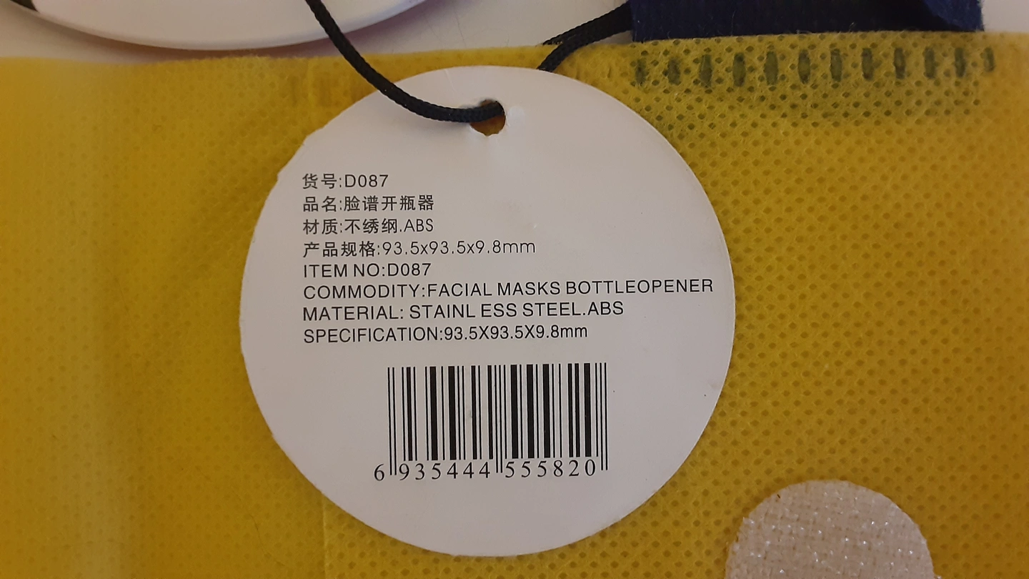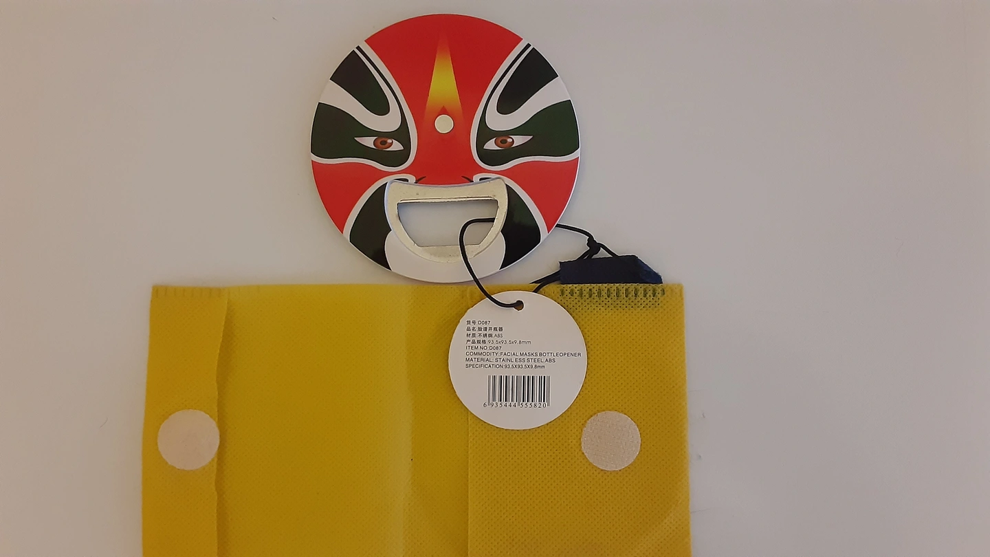 Fun, bright colours, and well-designed, this two-sided Kabuki warrior is up to the task of opening your favourite drink bottles! Add a little samurai style to your next sake party! ~4” wide.