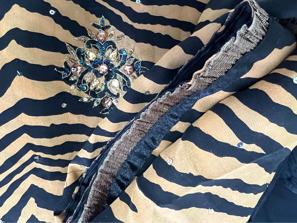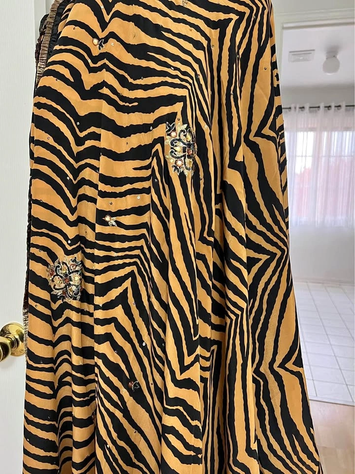 This is a designer custom made pure silk embroidered sari. Ready to wear. No low ball offers. Serious buyers only.