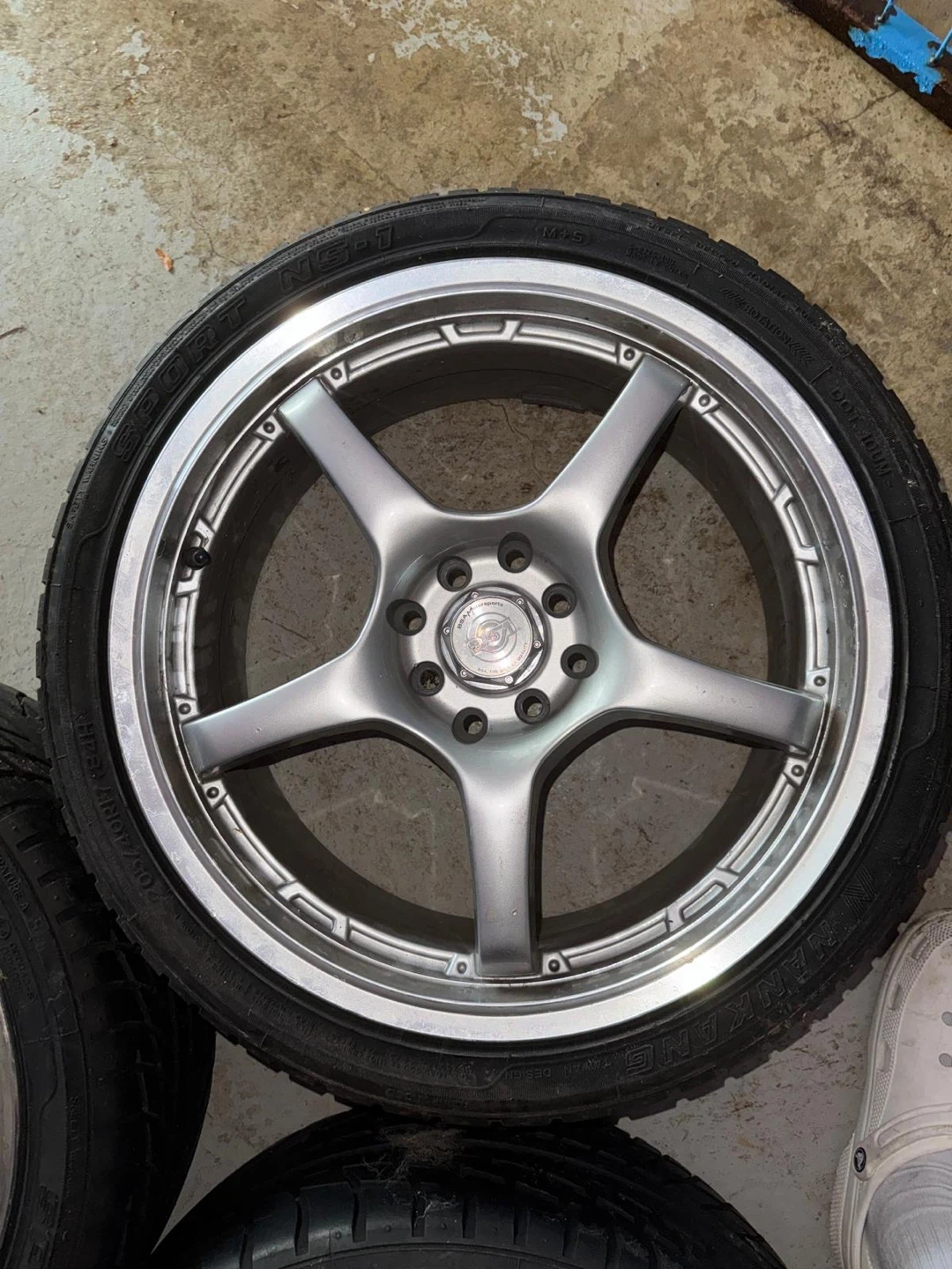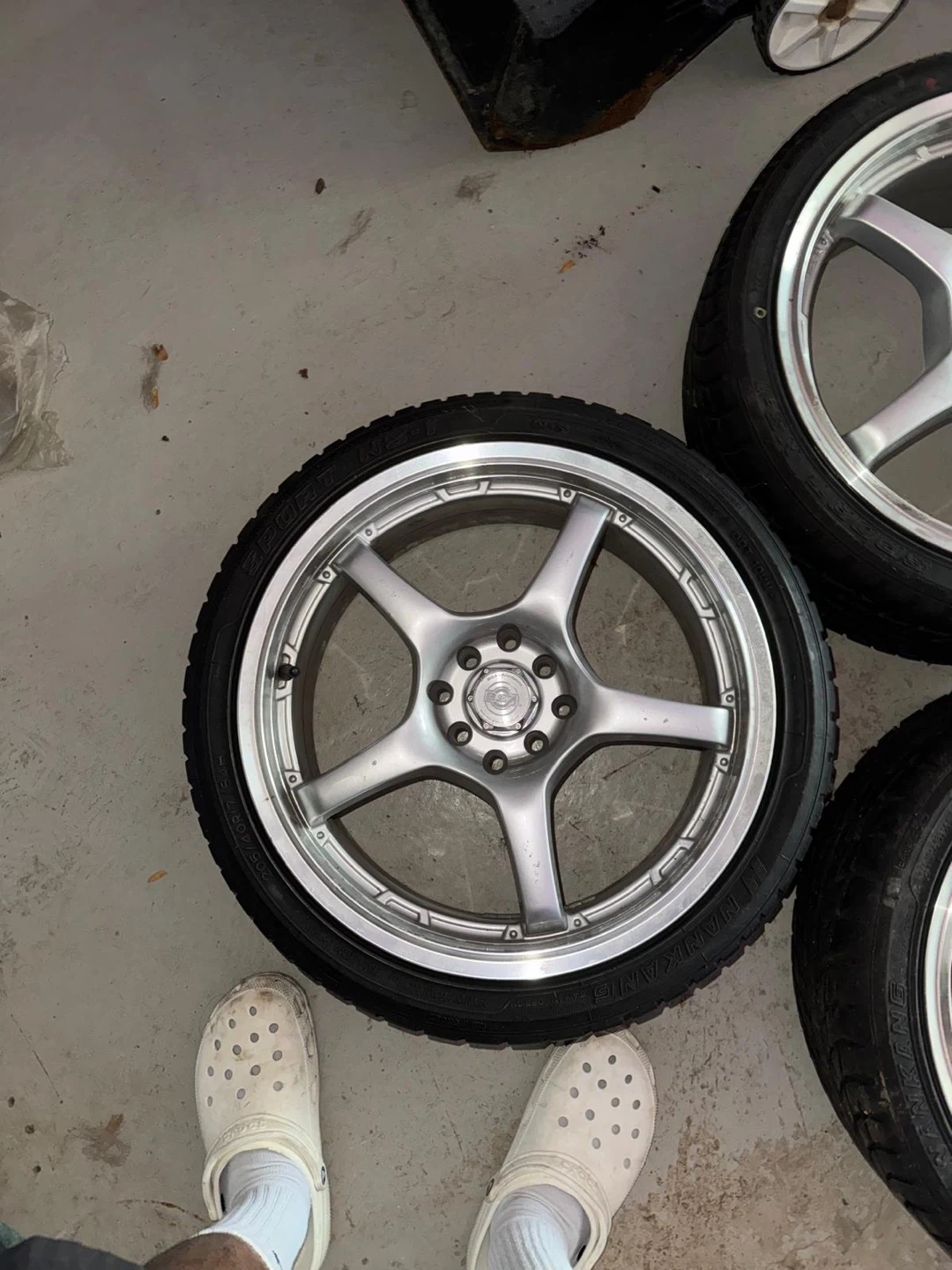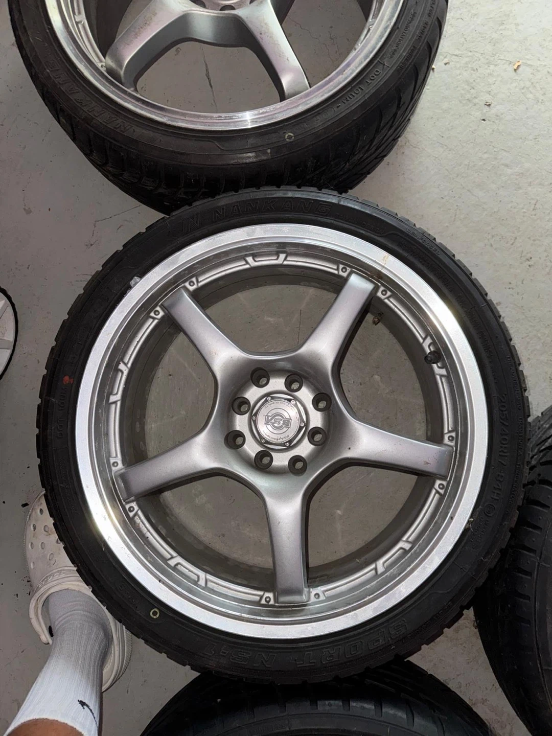 10Selling a set of used silver 4 Spoke rims universal alone tires are worn out but maybe useable for a summer season.
