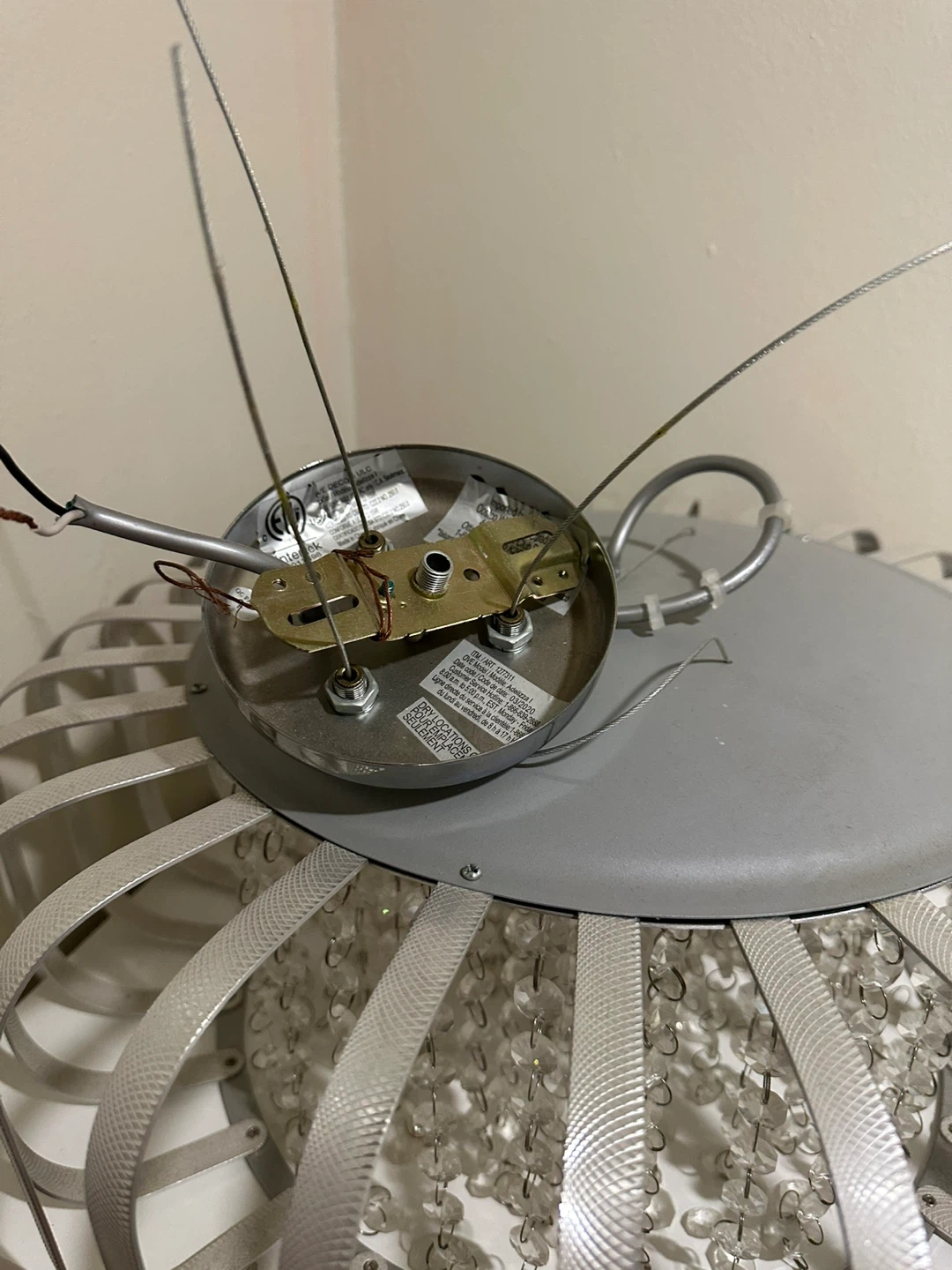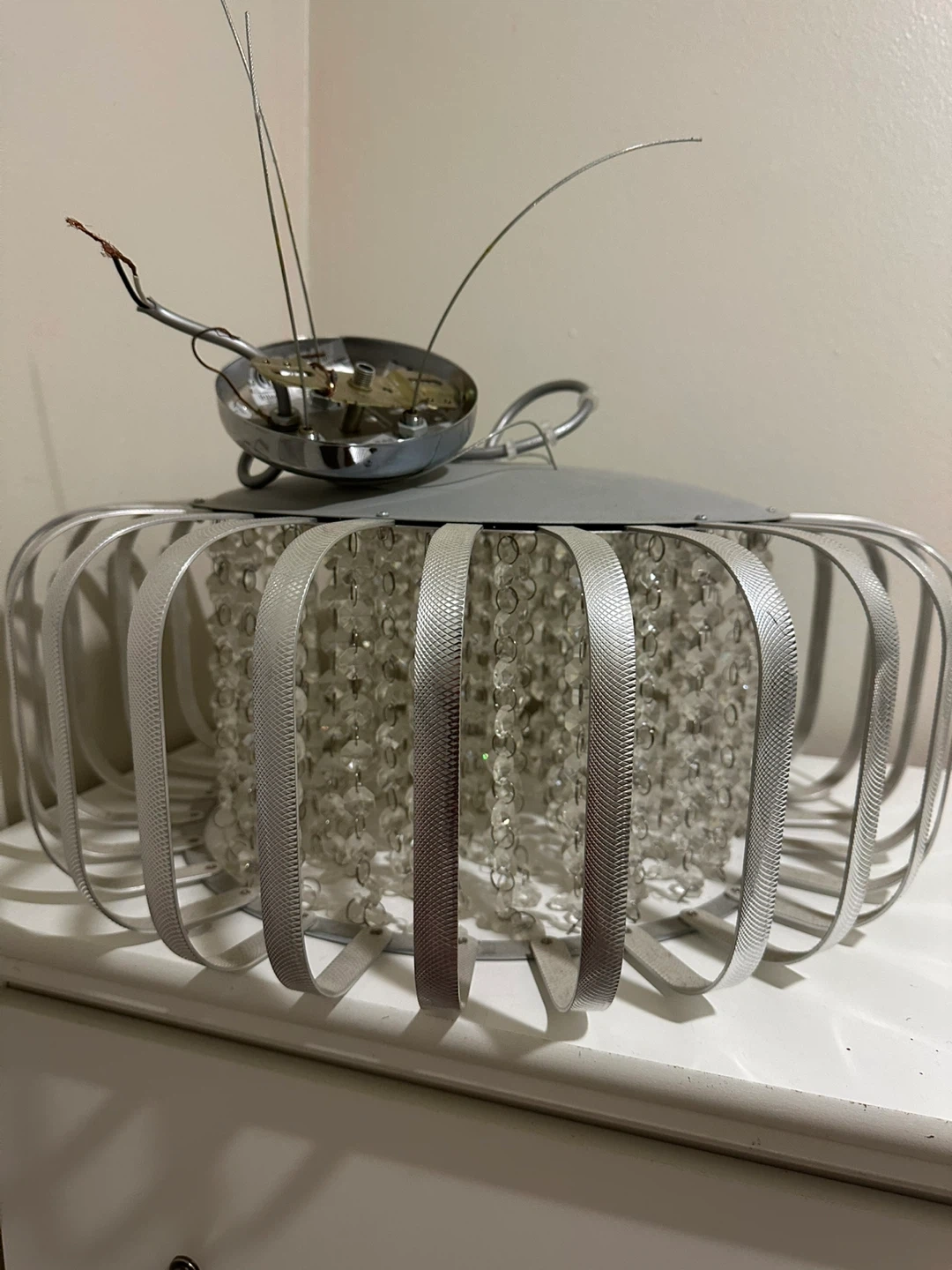 Selling a silver beaded chandelier. It's in good condition and would add a touch of elegance to any room! The chandelier features a silver frame with strands of clear beads. Perfect for a dining room, living room, or bedroom