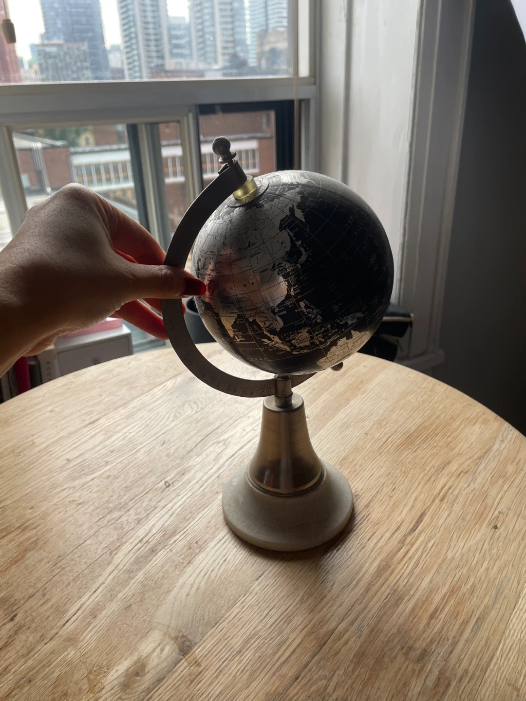 422Selling a decorative globe with a silver and black finish. It's in great shape and would look great in any room!