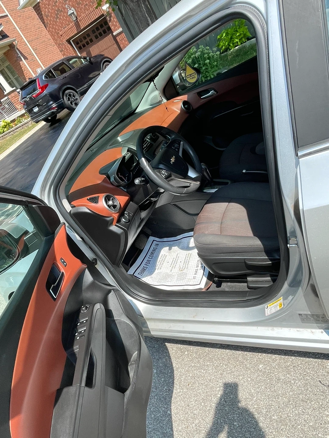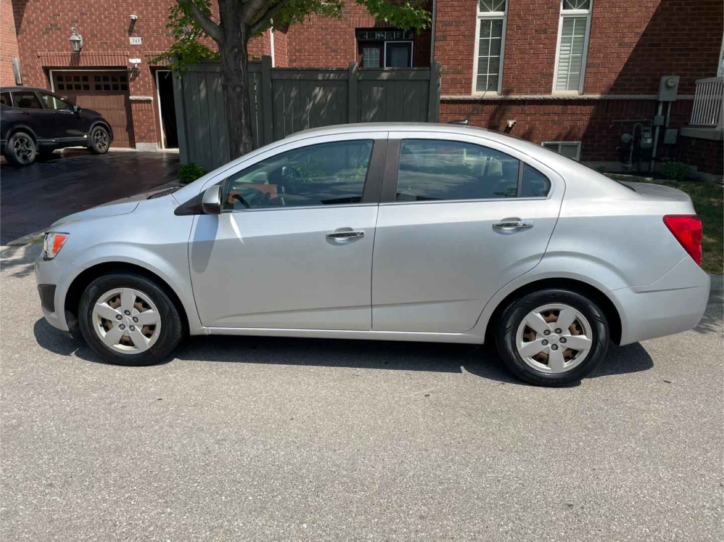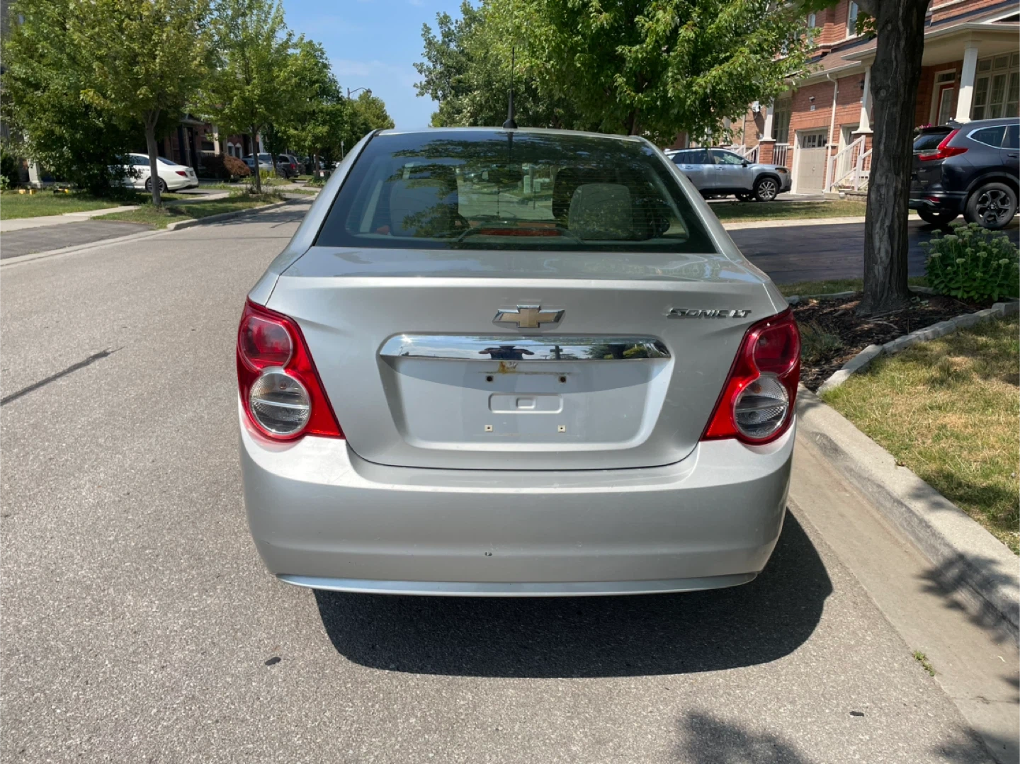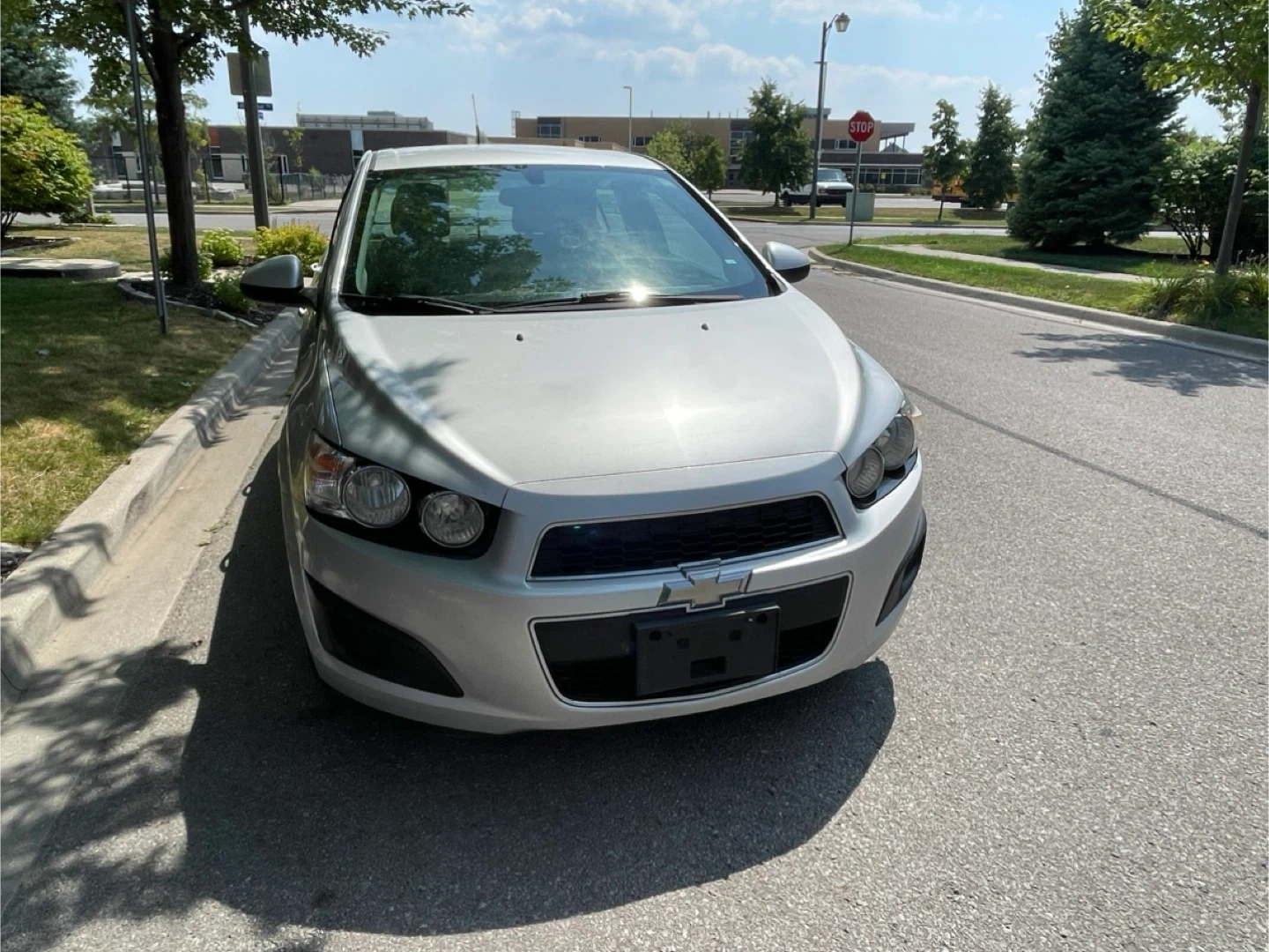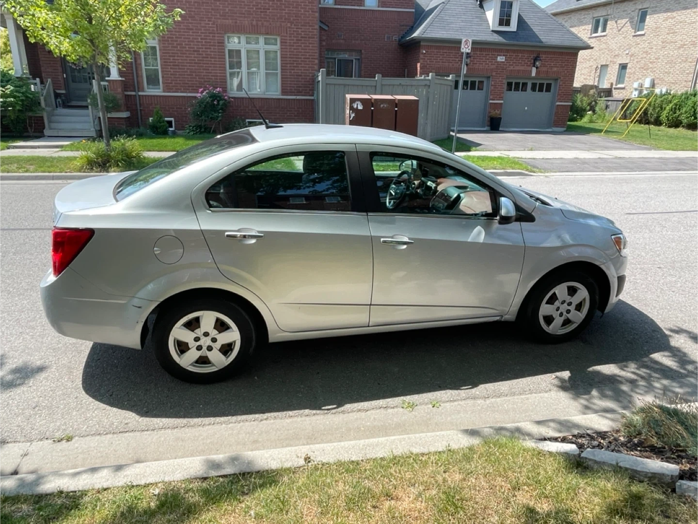Selling a silver Chevrolet Sonic LT sedan. It looks to be in good condition and ready for a new owner. Perfect for getting around town! Comes with two set tires and two keys
