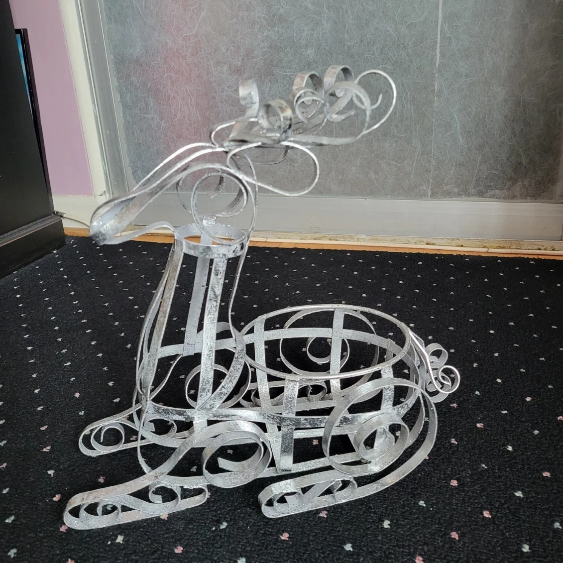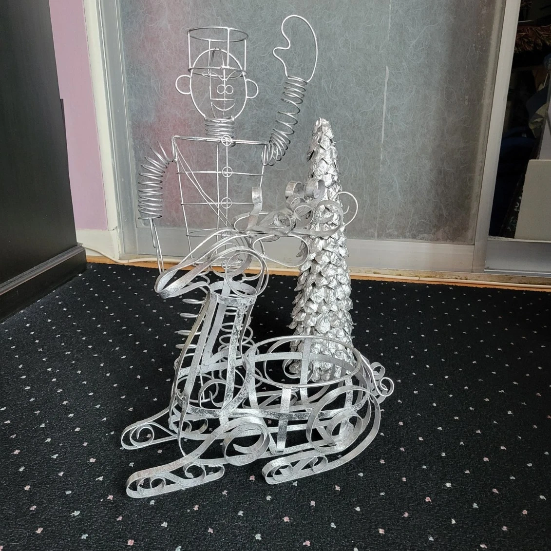 70Selling a set of charming silver coloured Christmas decorations! Includes a Metal Reindeer, a pine cone tree, and a Wire Tin man figure. Perfect for adding a unique and whimsical touch to your holiday decor Cash only please. Thanks.