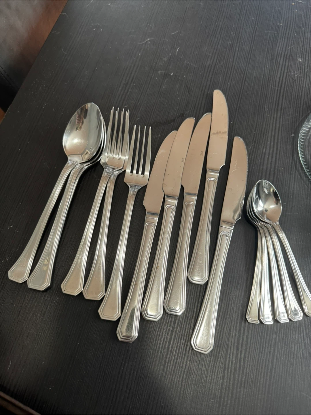 95Selling a set of silver cutlery! Includes forks, spoons, and knives. Perfect for everyday use or special occasions