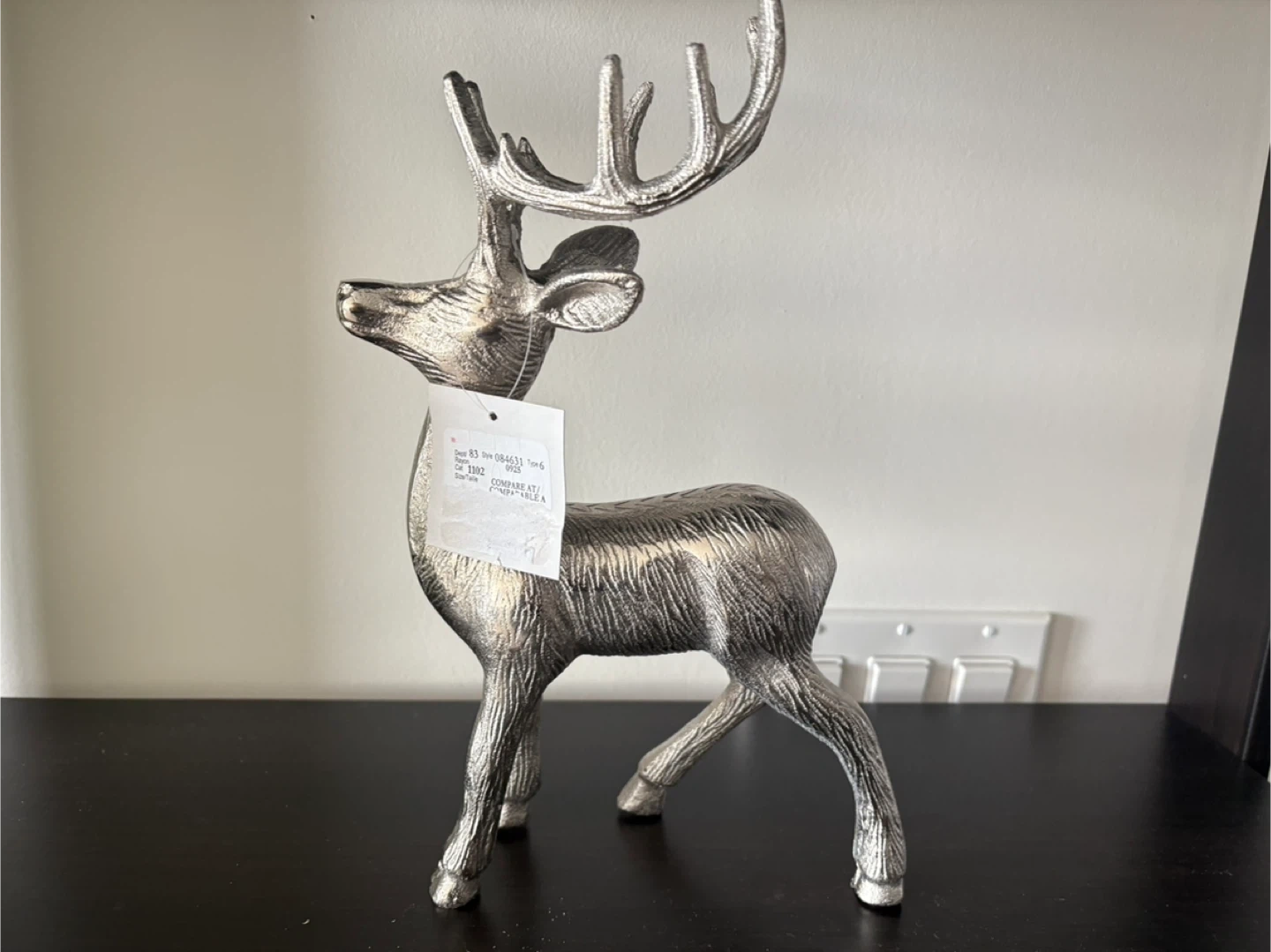84Selling a lovely silver decorative reindeer. It's in great condition and would make a beautiful addition to any room or holiday display