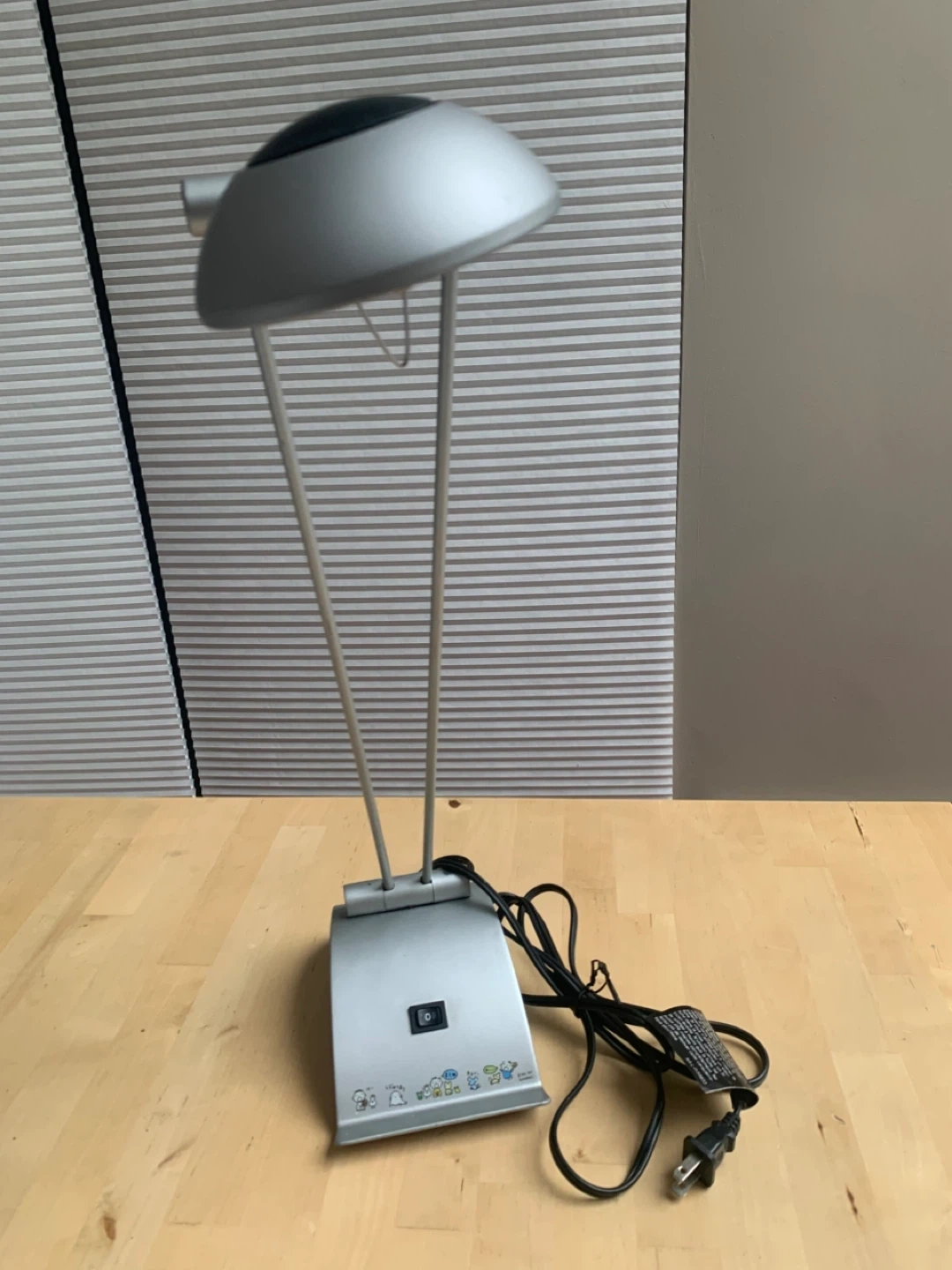 Selling a silver desk lamp. It's in great condition and would be perfect for a home office or study space! The lamp has a sleek, modern design and provides ample light for any task