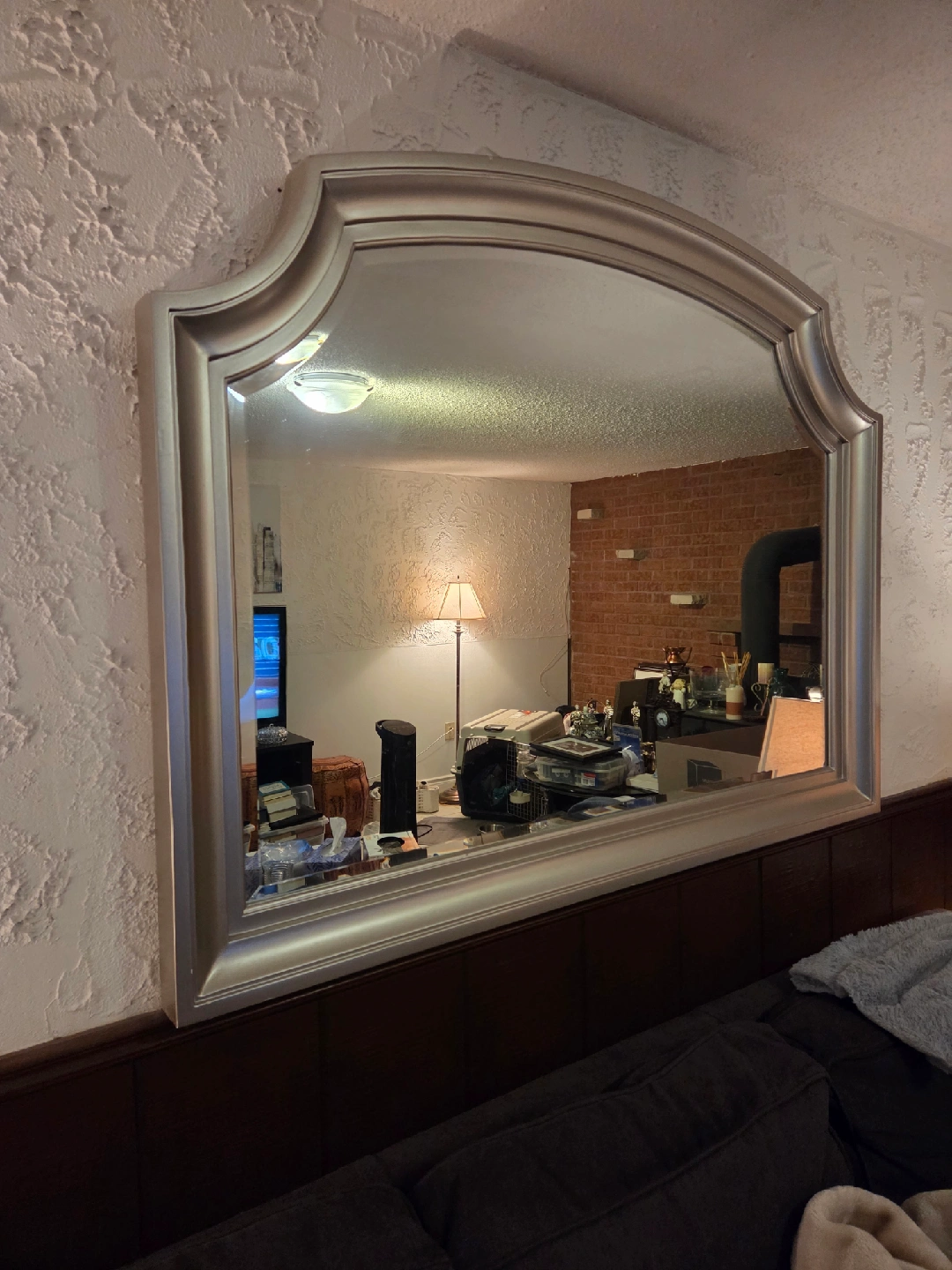 Selling a lovely silver framed wall mirror! It's in great shape and would be a nice addition to any room. The frame has a classic, elegant design that would complement a variety of decor styles