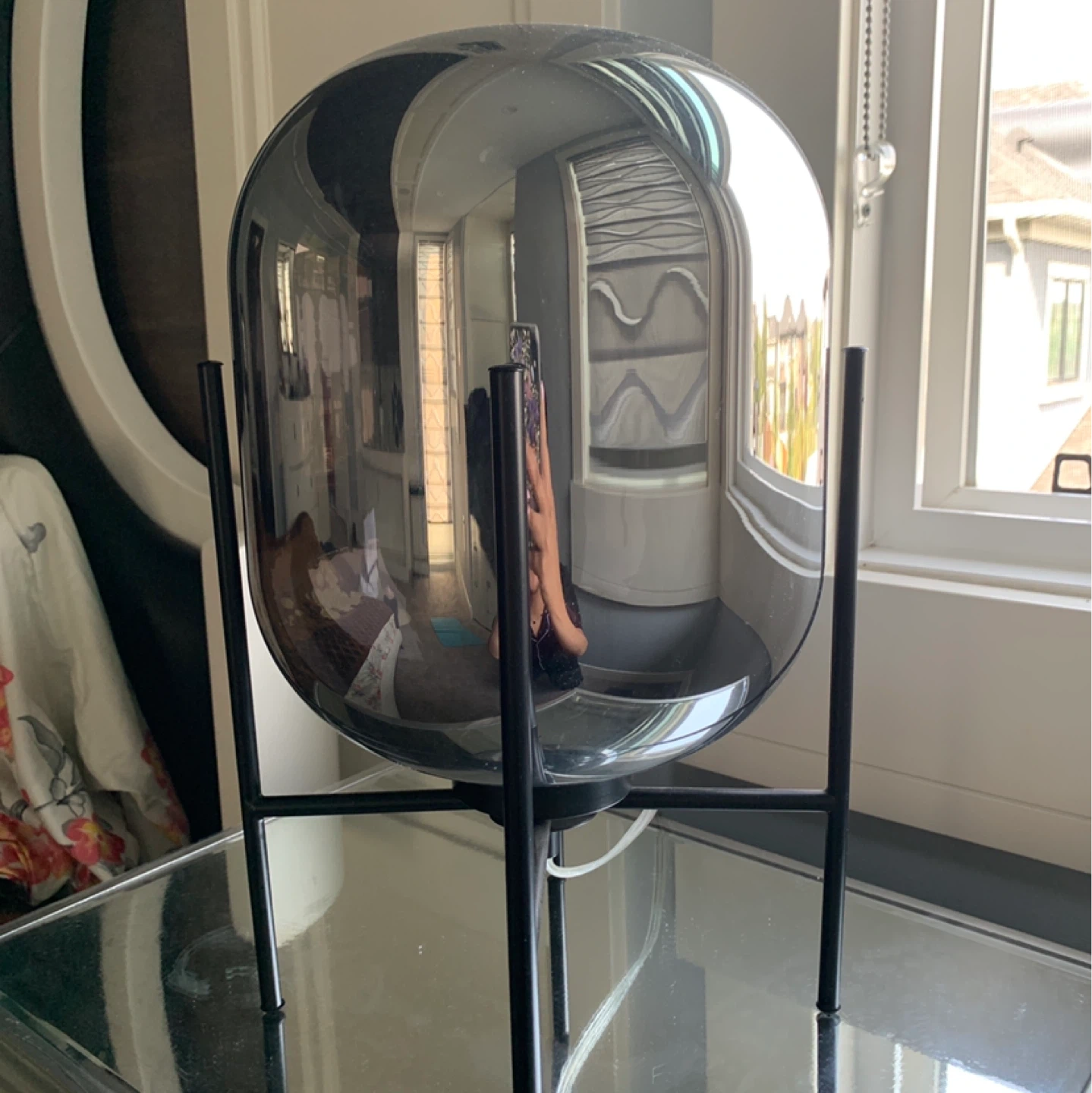 Add a touch of modern elegance to your space with this stylish silver globe table lamp! It features a sleek, spherical design and a sturdy black stand, perfect for any room in your home