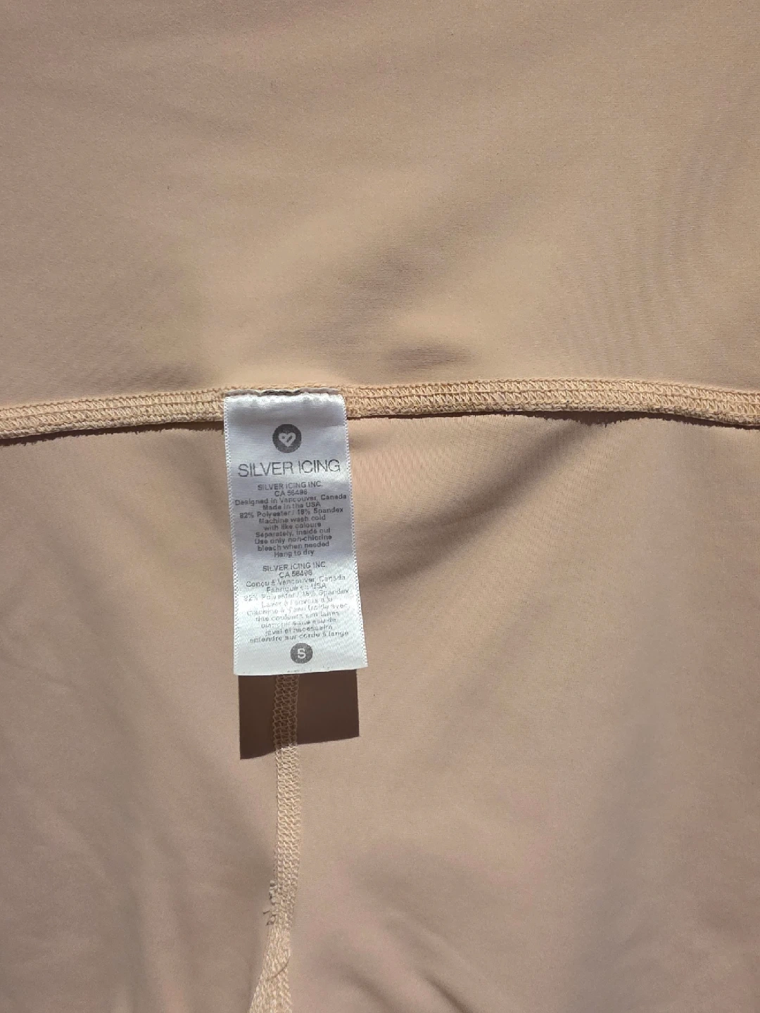 60Selling a pair of Silver Icing shorts in size small. They're in great condition and ready for a new home! The material is 82% polyester and 18% spandex, making them comfy and stretchy