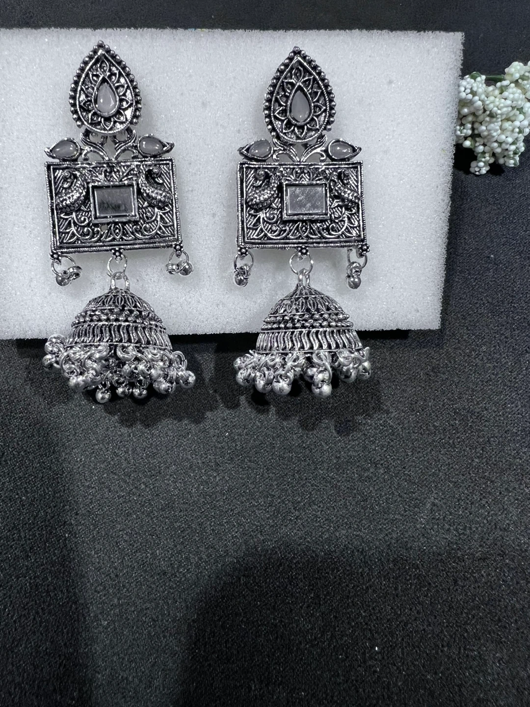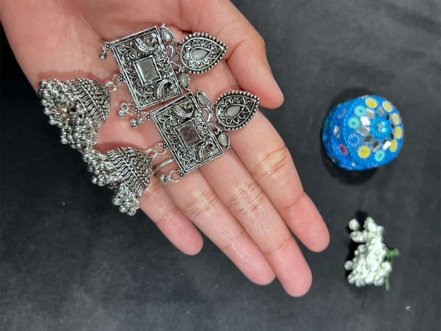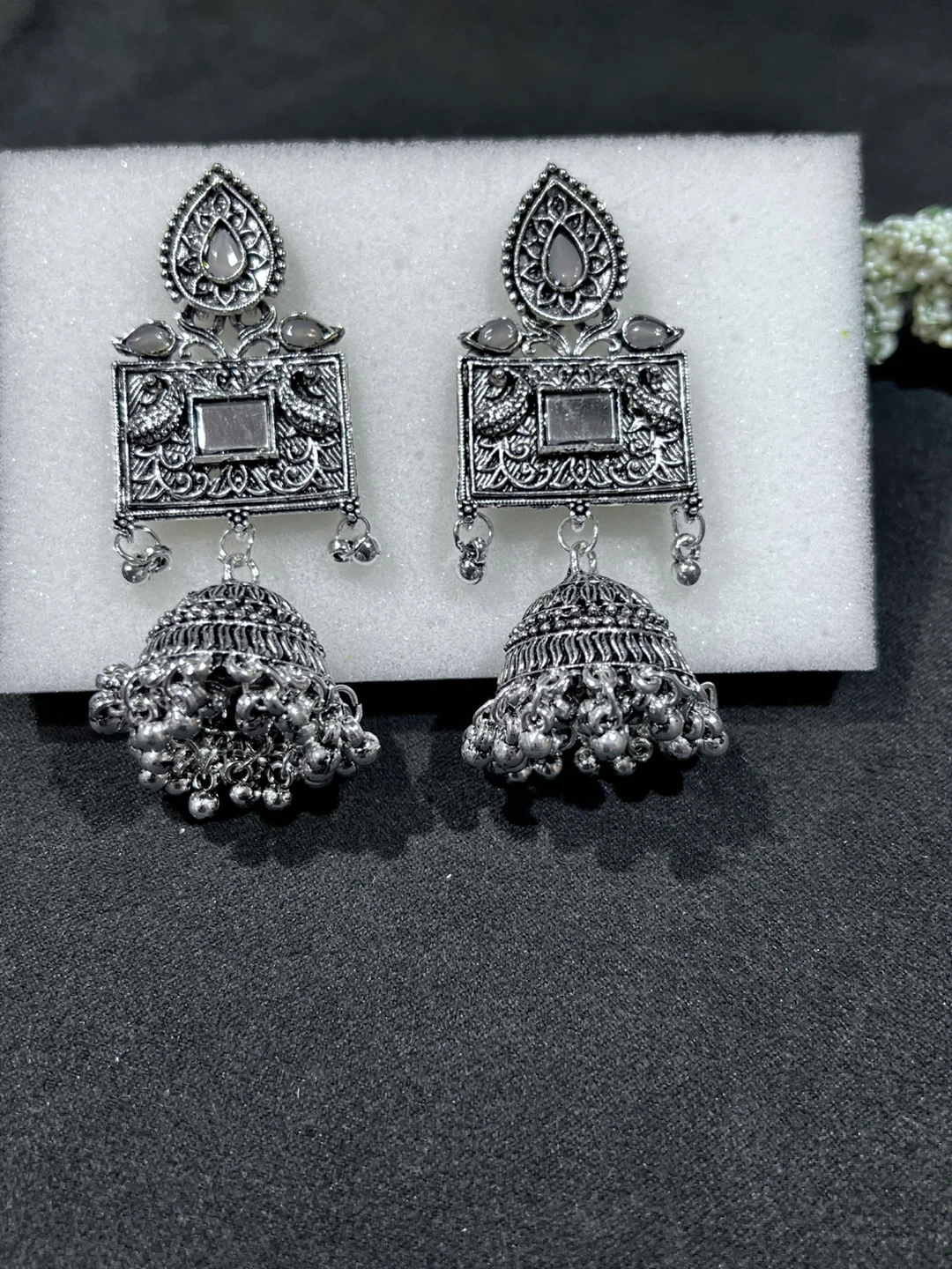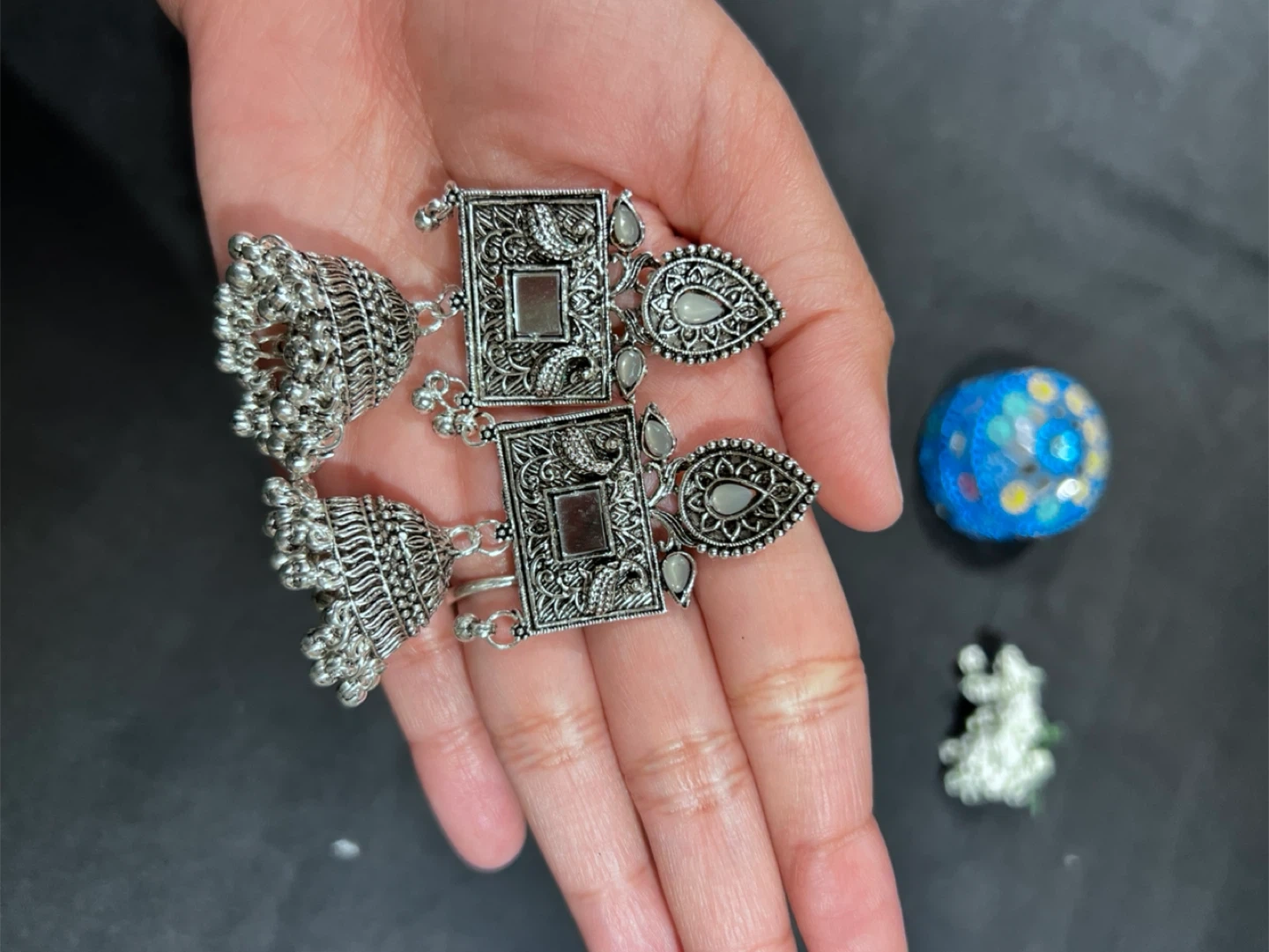 Selling a pair of silver jhumka earrings. They are in great condition and would make a lovely addition to any outfit!