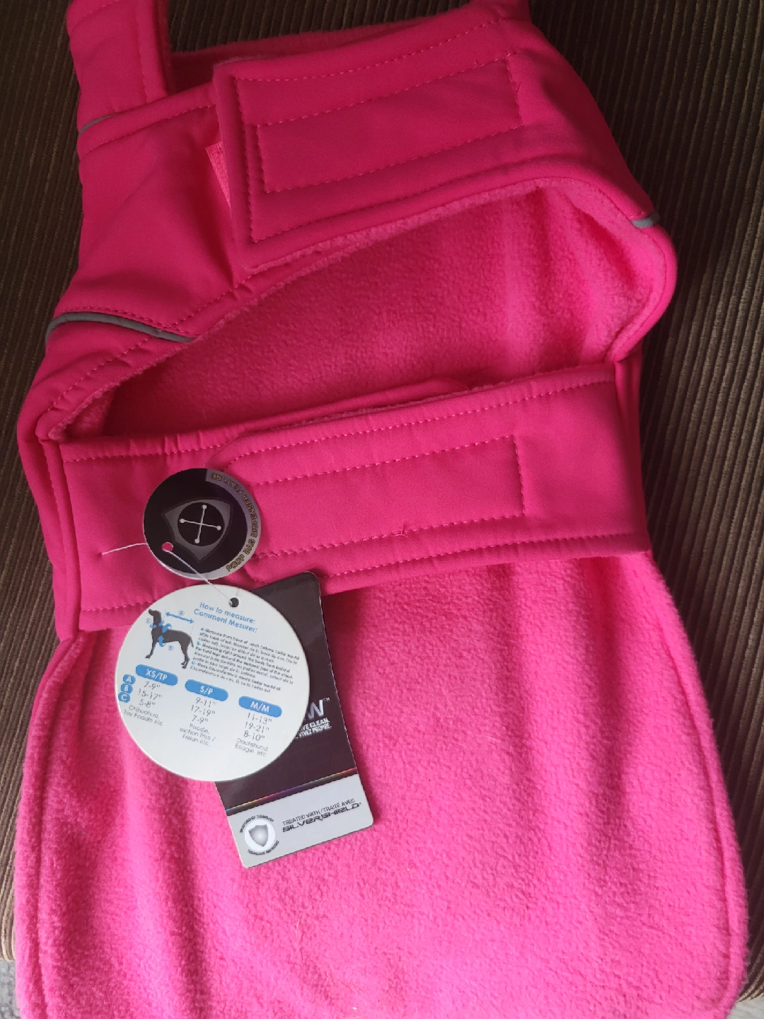 Keep your furry friend warm and stylish with this Silver Paw dog coat! It's a vibrant pink colour and size XS/S. Check the sizing chart in the photos to ensure a perfect fit for your pup