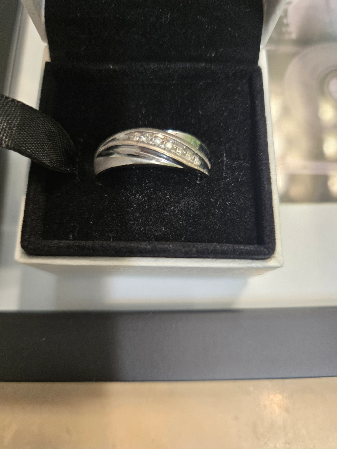 Selling a beautiful white gold wedding ring with diamonds, size11- 12. excellent condition. Perfect for a special occasion or as a lovely gift!