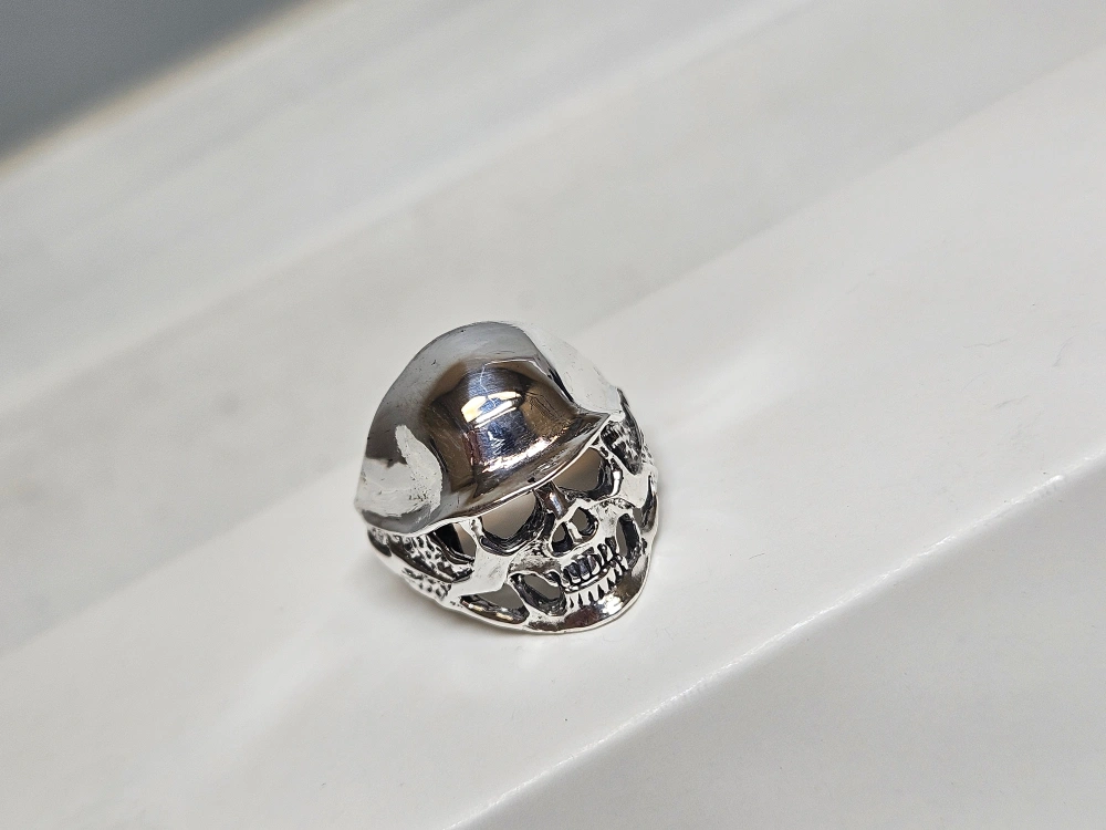 Selling a cool silver skull ring! It's in great shape and has a unique design. Perfect for adding a bit of edge to your style
