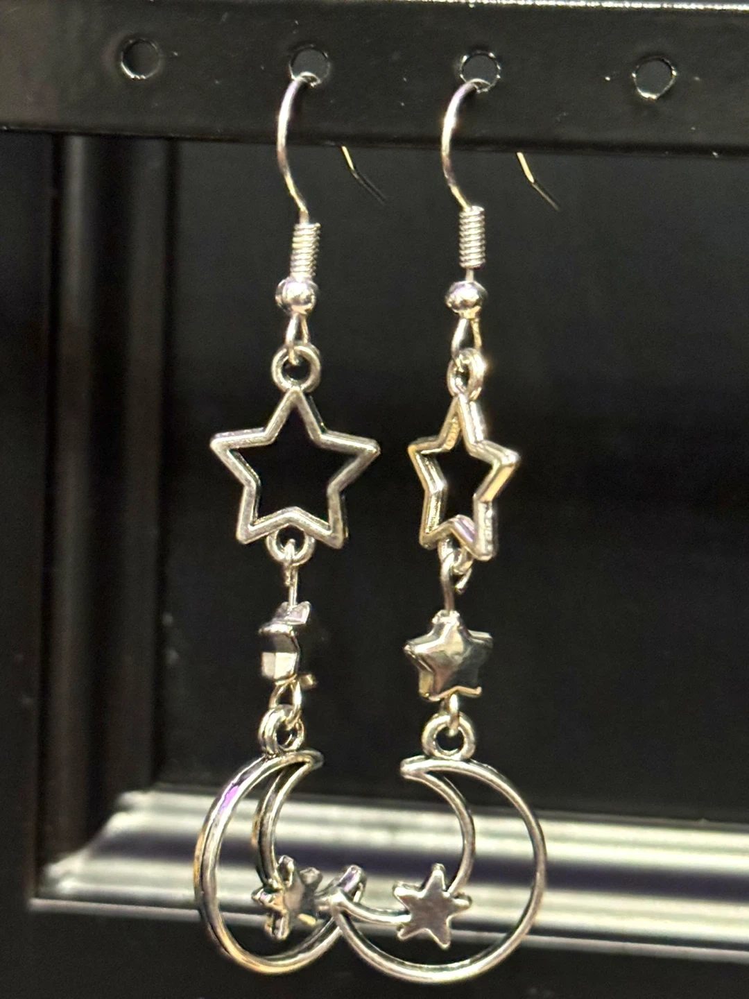 15Cute silver-tone dangle earrings featuring stars and moons! Perfect for adding a celestial touch to any outfit