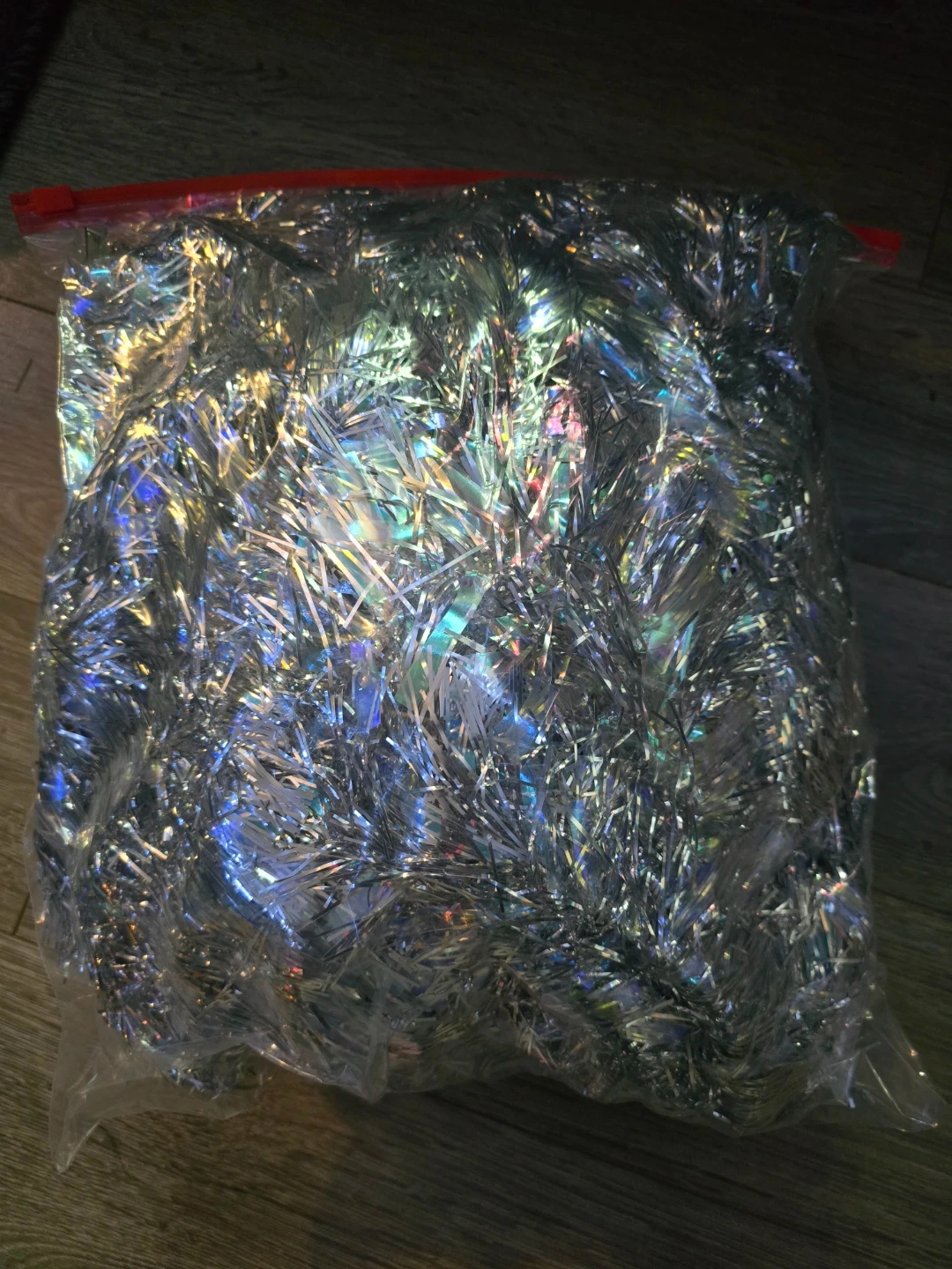 66Selling a bag of silver tinsel garland! Perfect for adding a bit of sparkle to your decorations. It's 7 full strands. Was the perfect amount for my 7 foot tree. I got a new color this year so this one has to go. :)