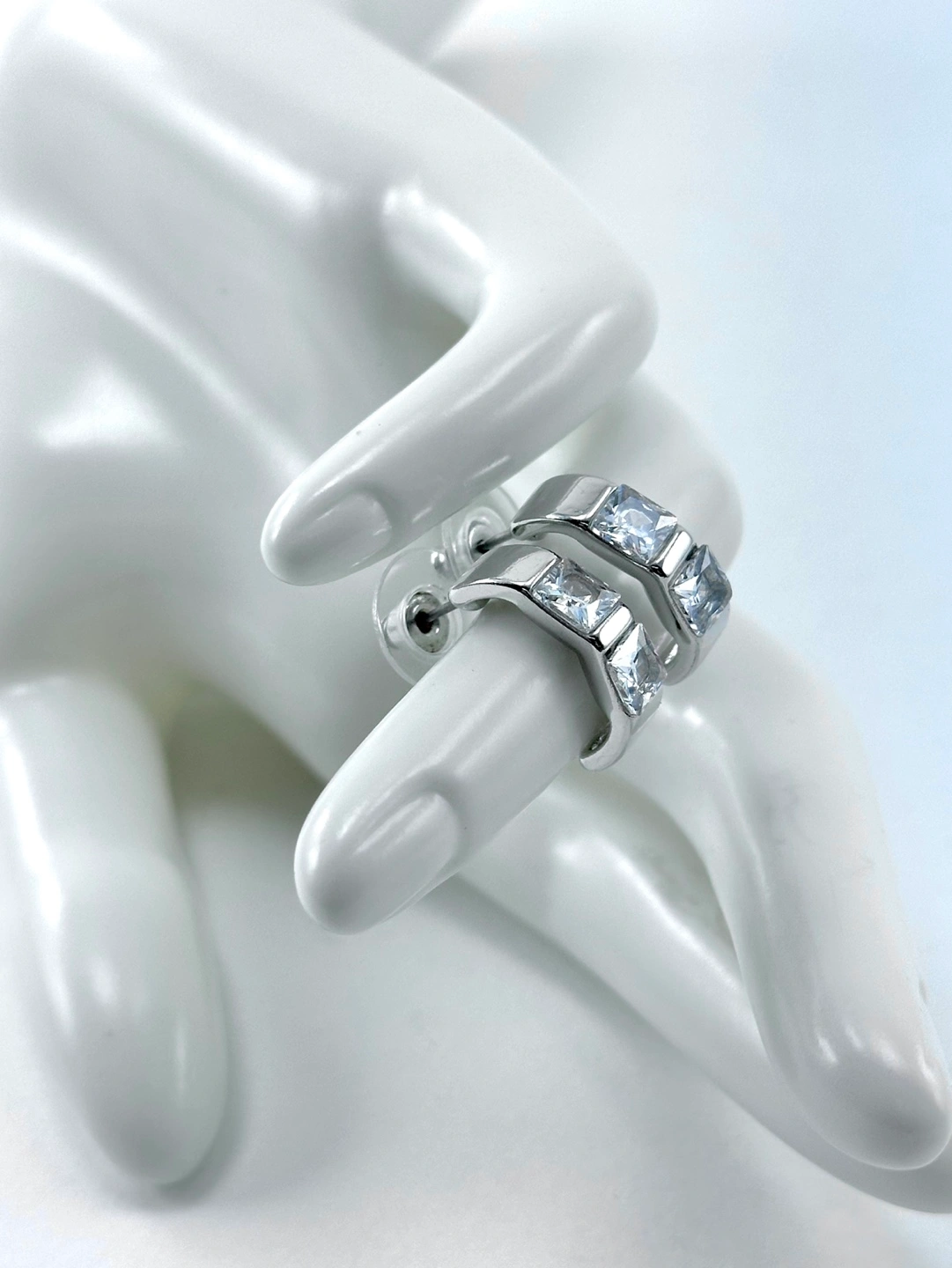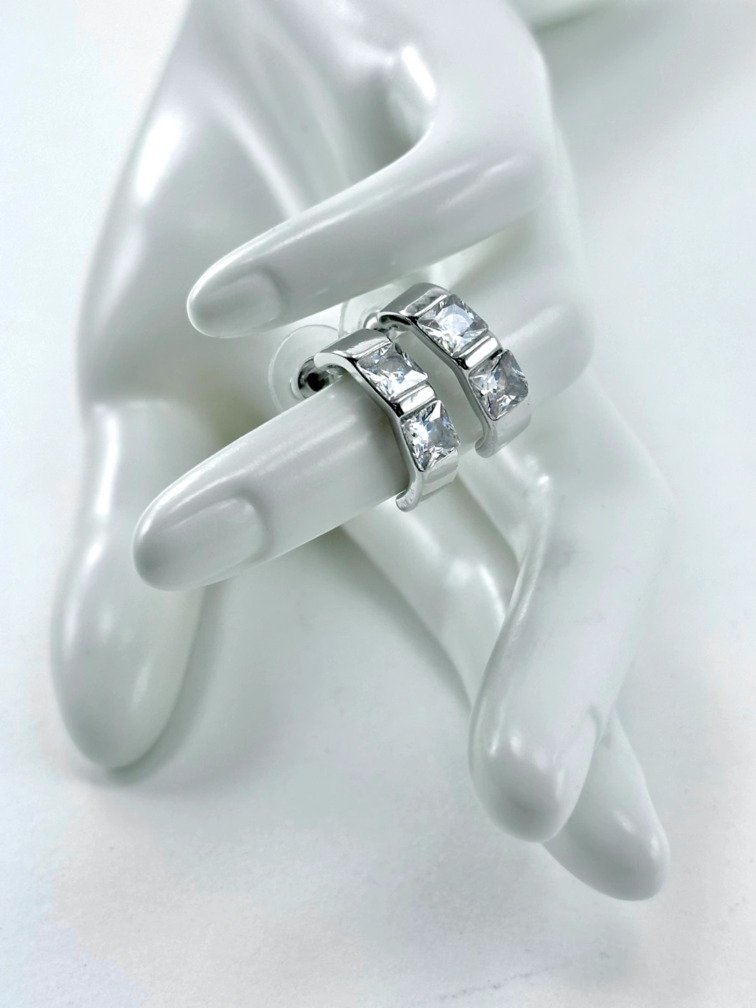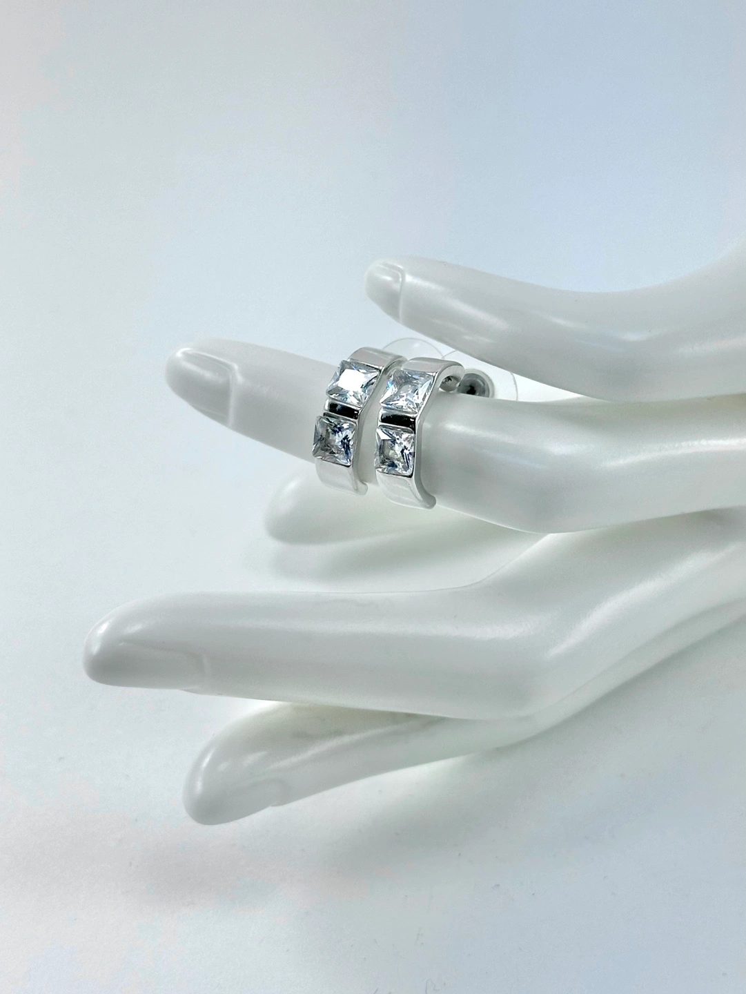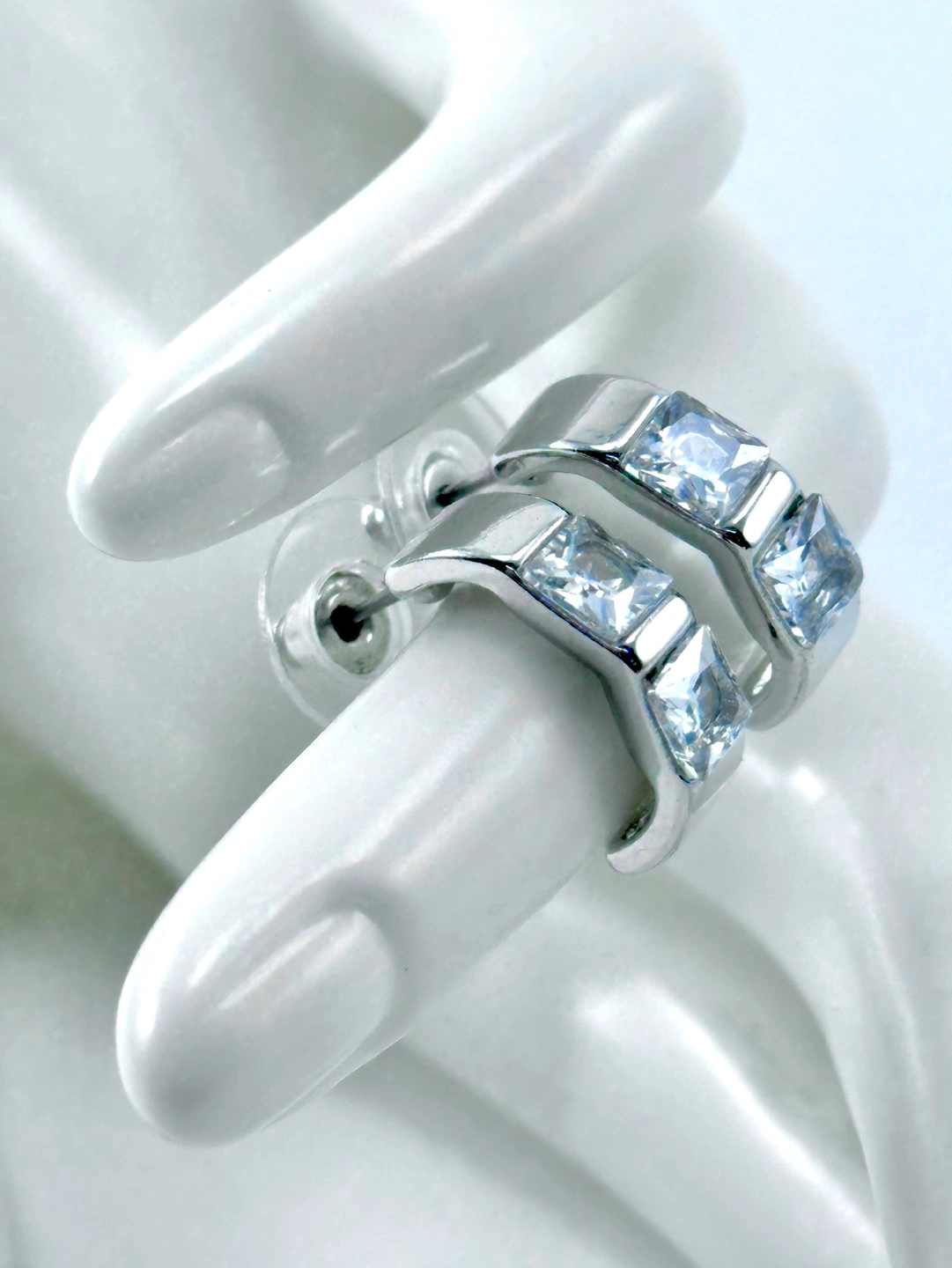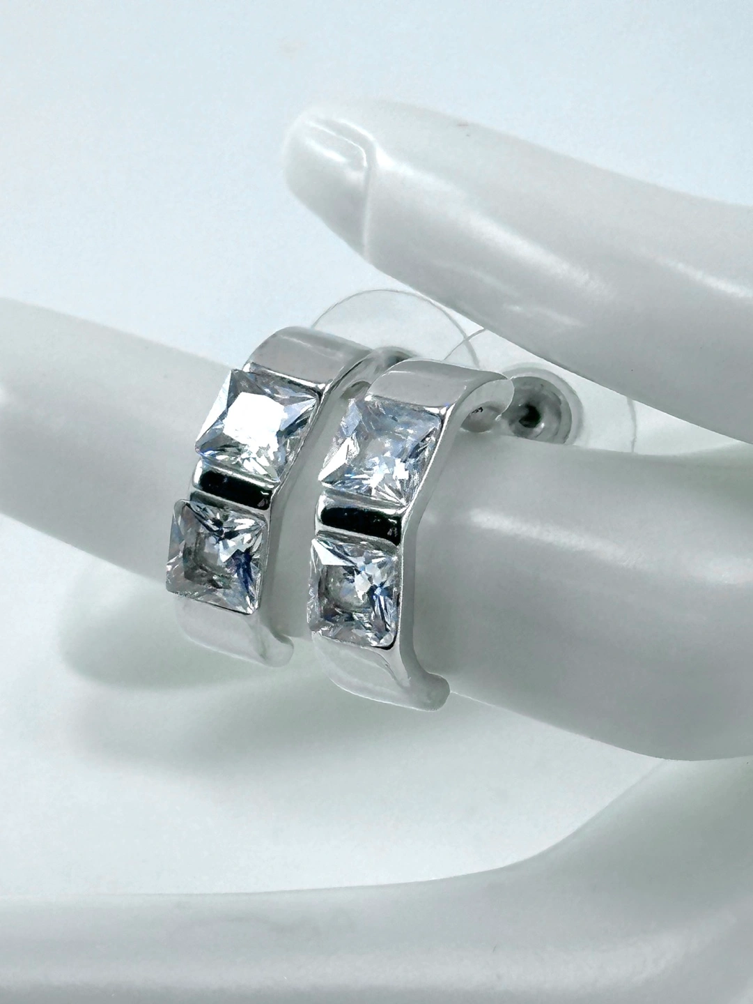 Like-new condition medium-sized silverplated earrings with large square cut white zirconias for pierced ears