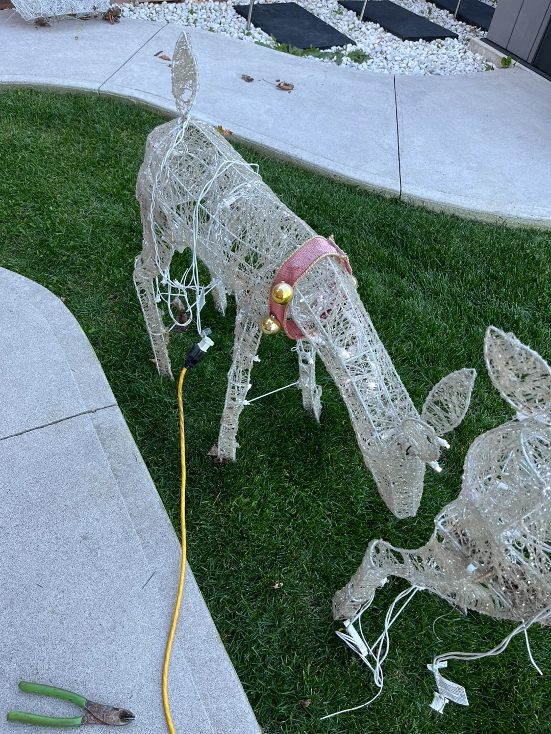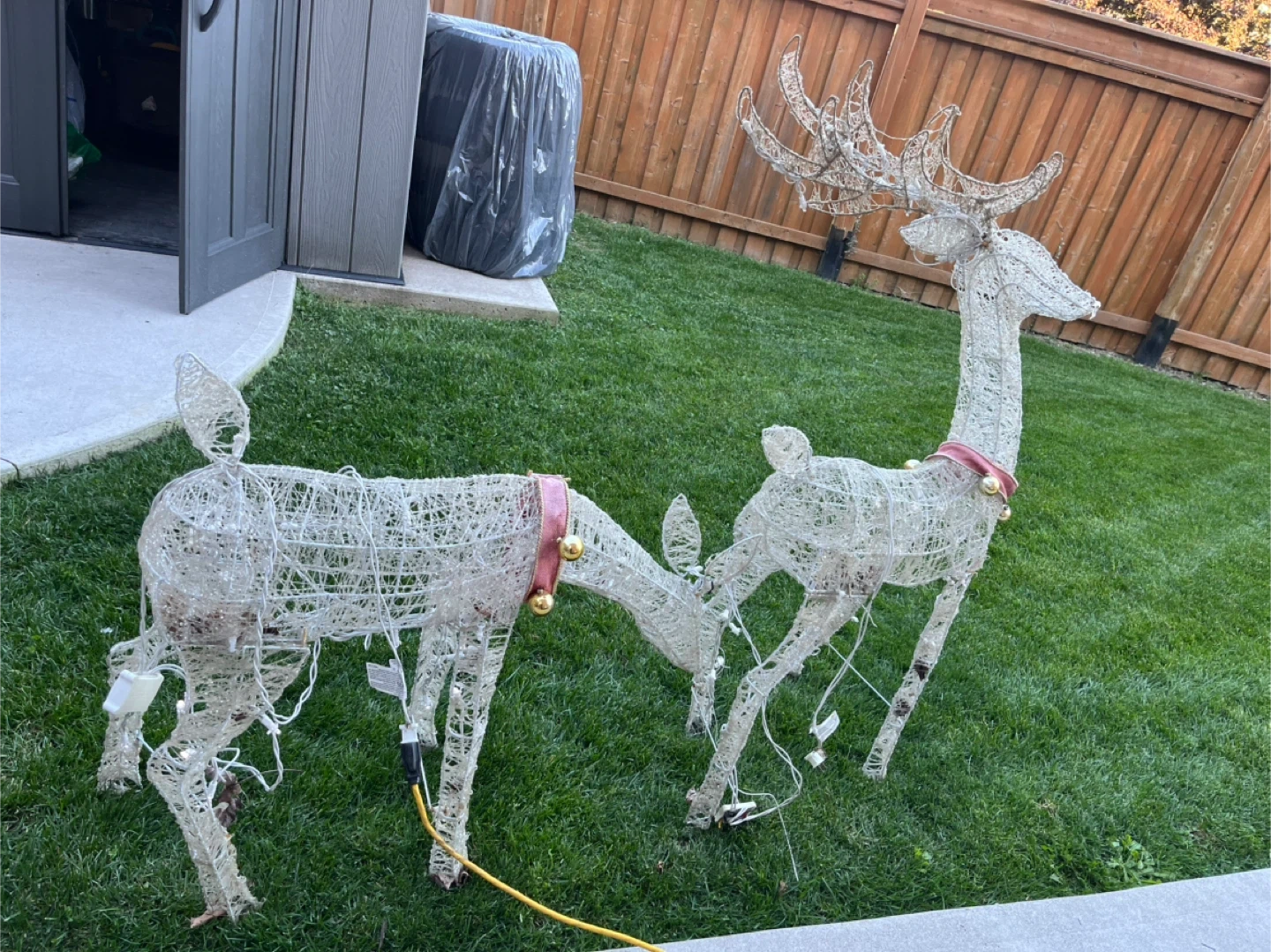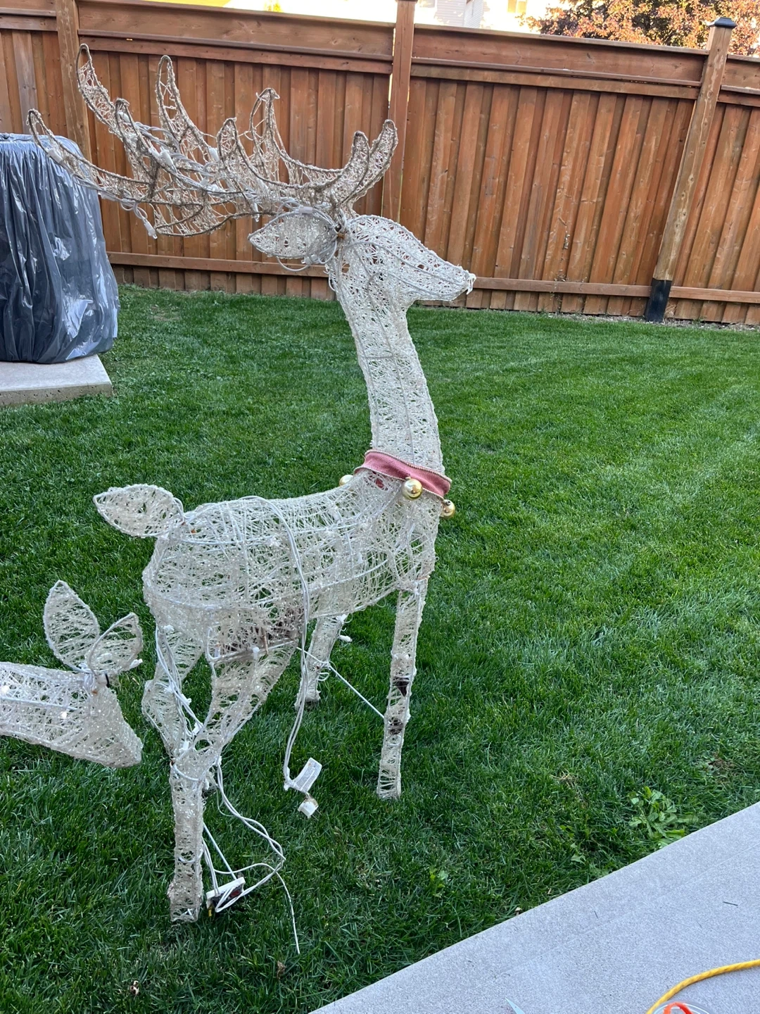 Selling these Christmas Reindeer’s 4 Ft & 2.5 ft Small one lights up big one doesn’t Message me for delivery inquiries Cash only Checkout my other listings for more great deals!!