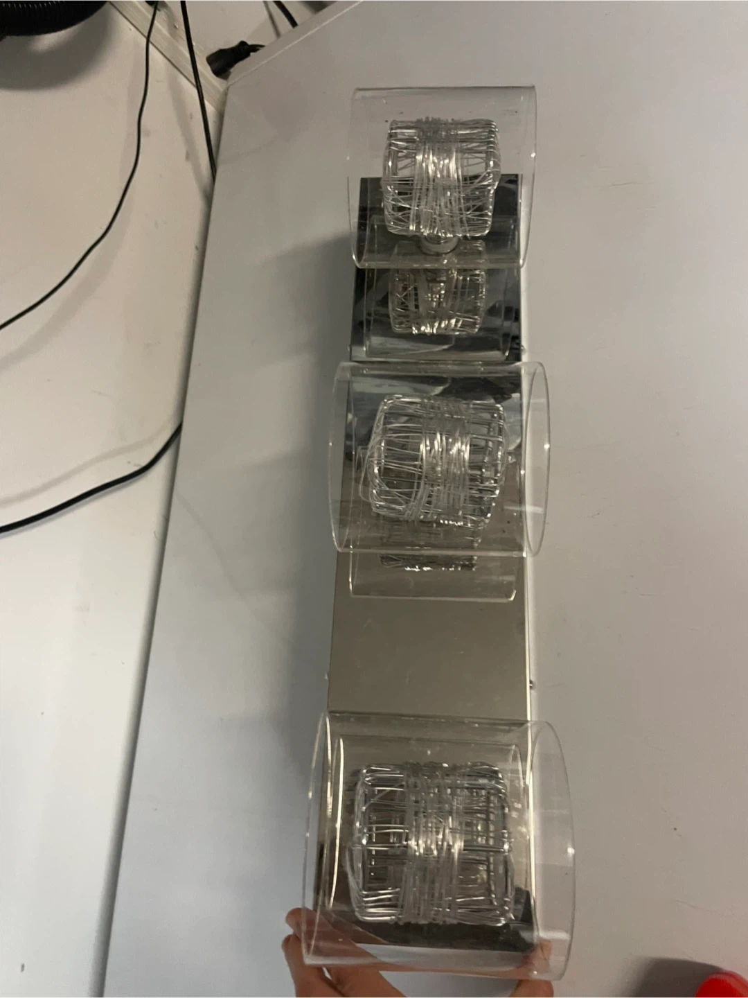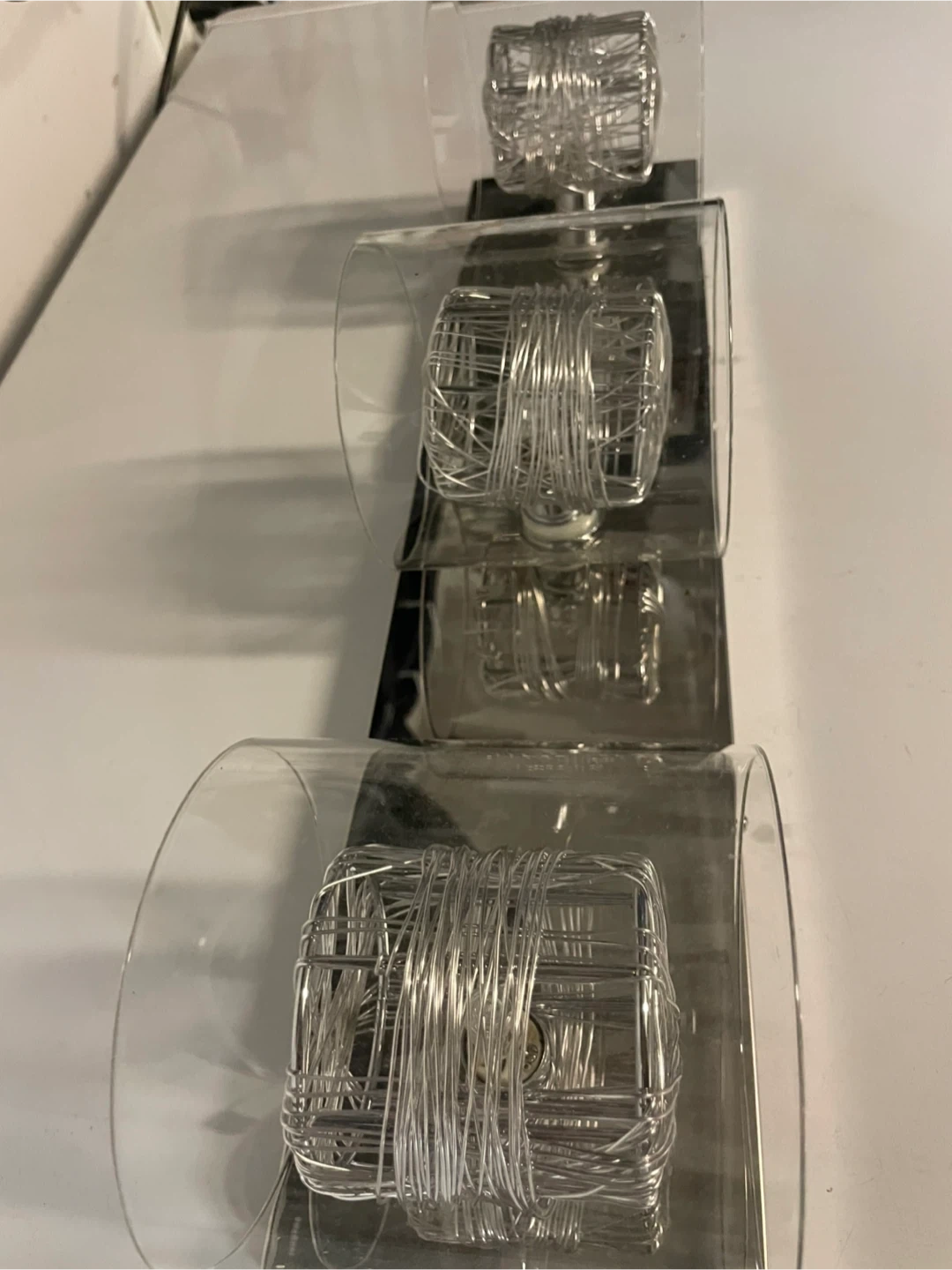 10Selling a 3- light vanity light fixture. Unique silver wire design encased in clear glass shades. It's in great condition and would add a modern touch to any bathroom. Same light fixture sells for over 300$ on Amazon. Takes G9 bulbs available in LED