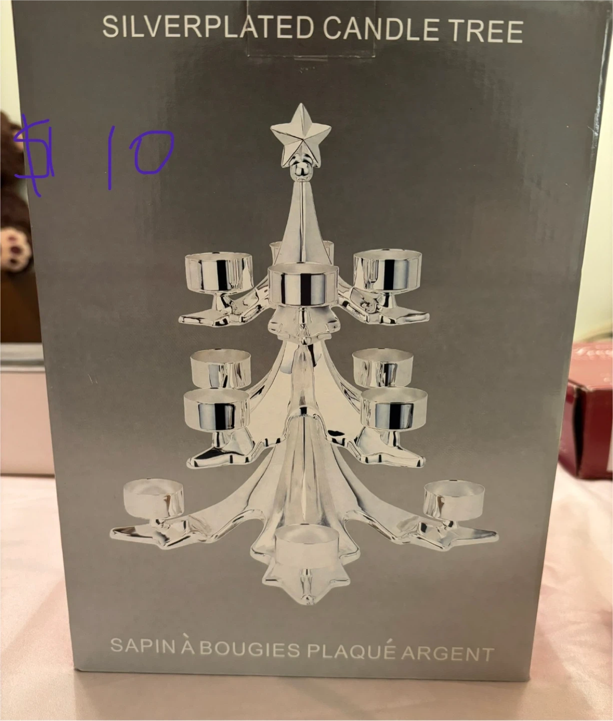 123Selling a silverplated candle tree! The candle holder can accommodate 12 tea lights (not included). It's for decorative purposes only. Tealights not included