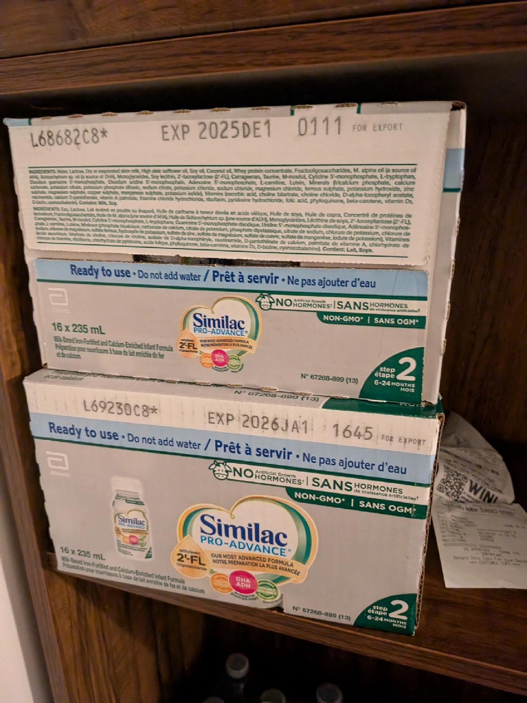 77Selling two boxes of Similac Pro-Advance infant formula. Each box contains 16 bottles of 235mL ready-to-use formula. Expiry dates are December 2025 and January 2026 $50 each or $80 for 2