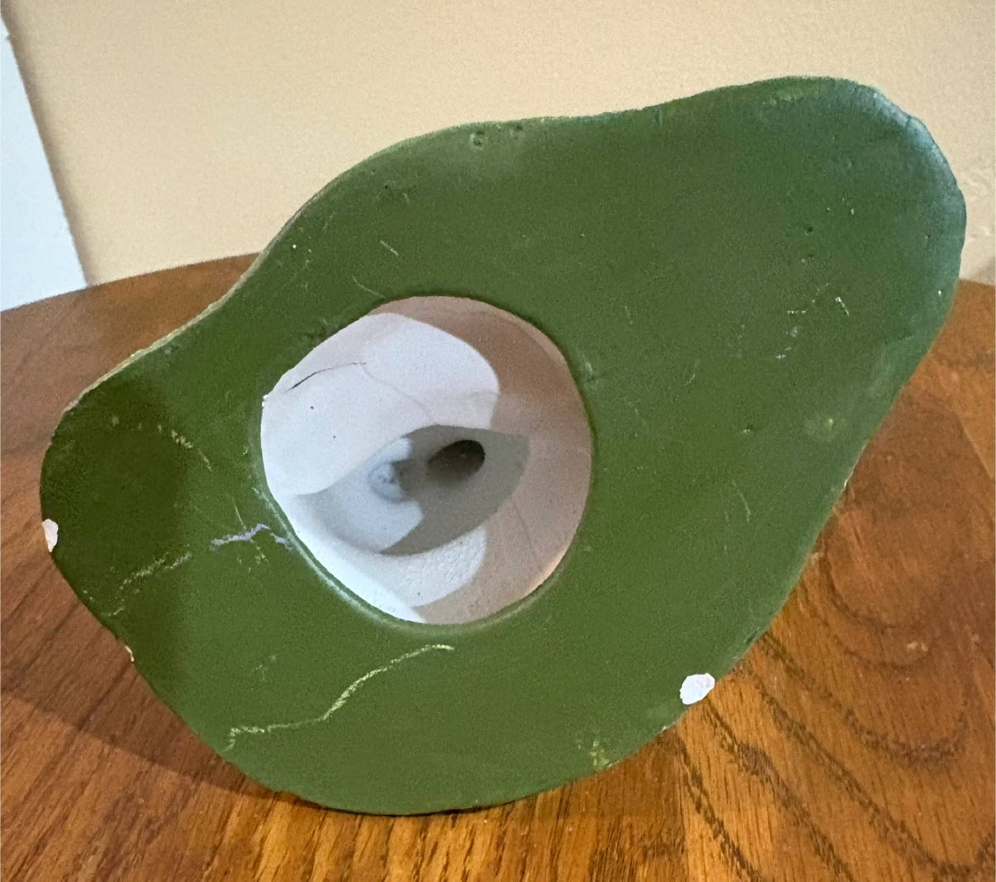 Cute ceramic Easter bunny figurine. It features a white bunny peeking out from the ground, holding a yellow sign that reads "Spring Has Sprung." It's a festive decoration for the spring season! Made of ceramic.