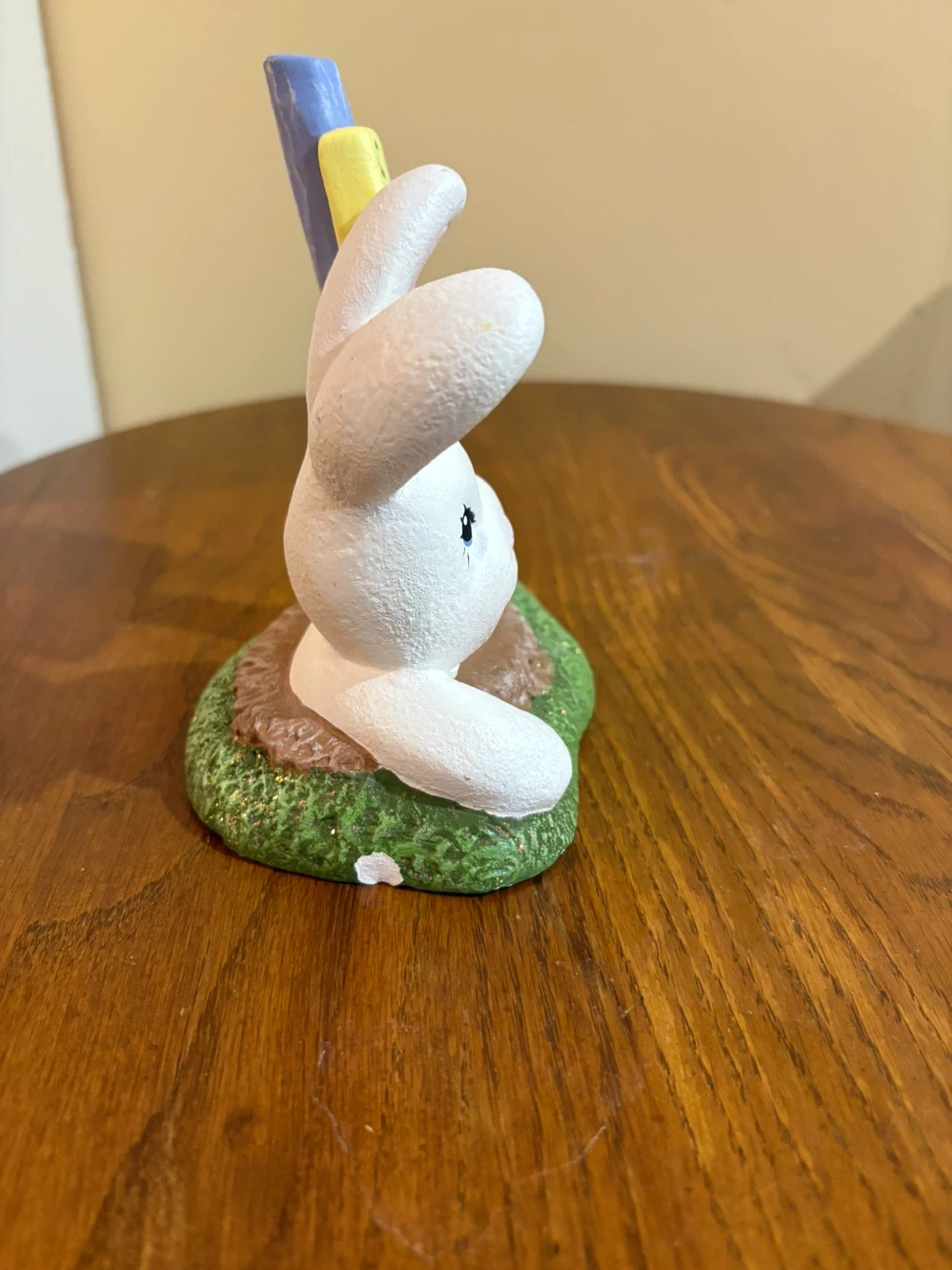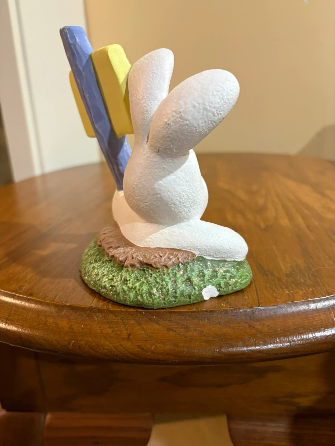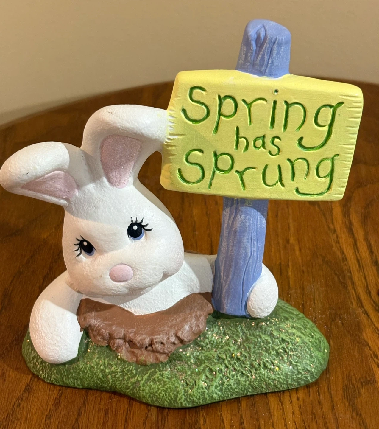 Ceramic Easter Bunny Figurine with "Spring Has Sprung" Sign