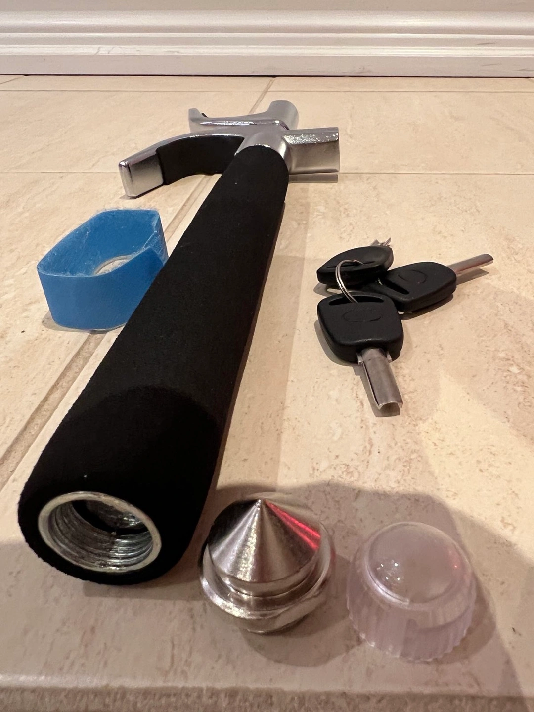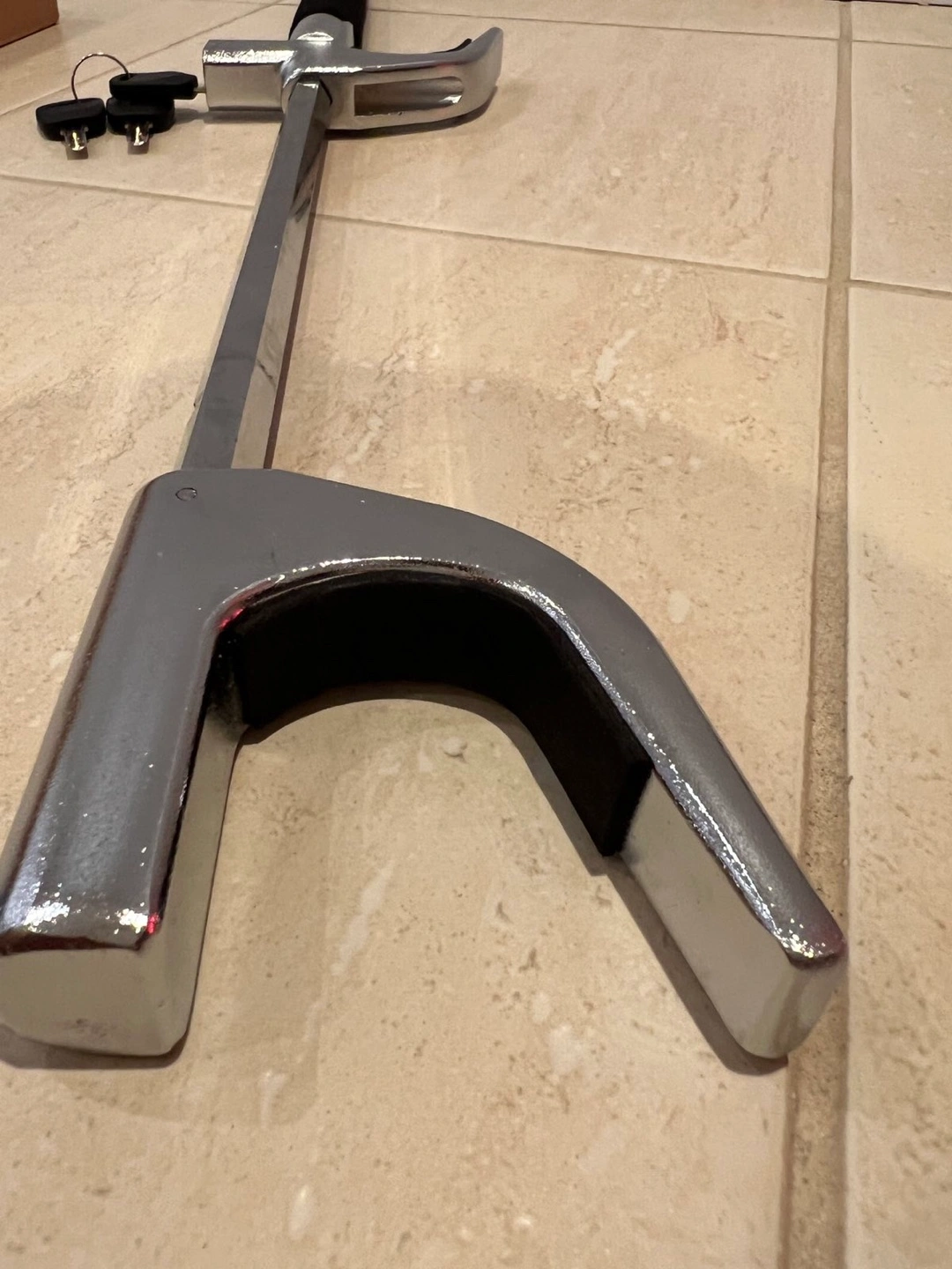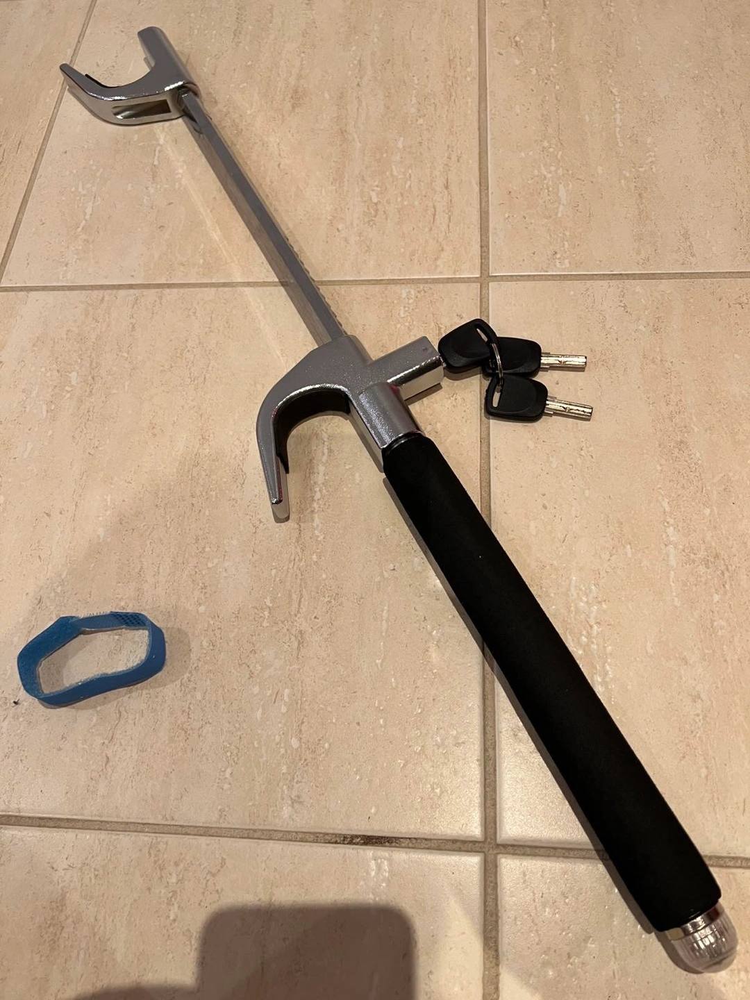 Selling a Simket car steering wheel lock. It's an anti-theft device to keep your car safe. Includes the box, keys, and all components shown in the pictures