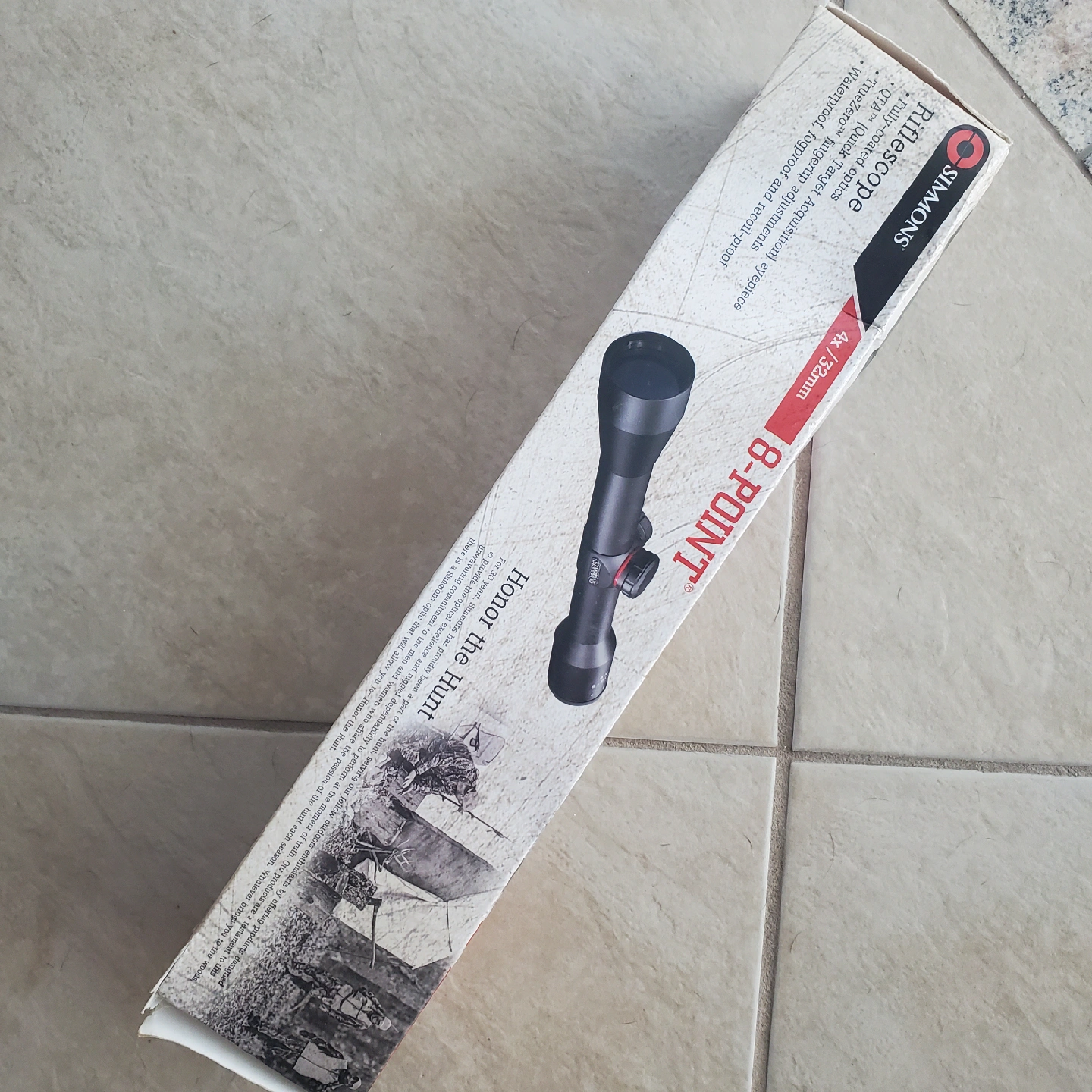 10Selling a Simmons 4x/32mm 8-Point Riflescope! It features fully-coated optics and a QTA™ (Quick Target Acquisition) eyepiece. Also has TrueZero™ fingertip adjustments. It's waterproof, fogproof, and recoil-proof. Comes with the original box