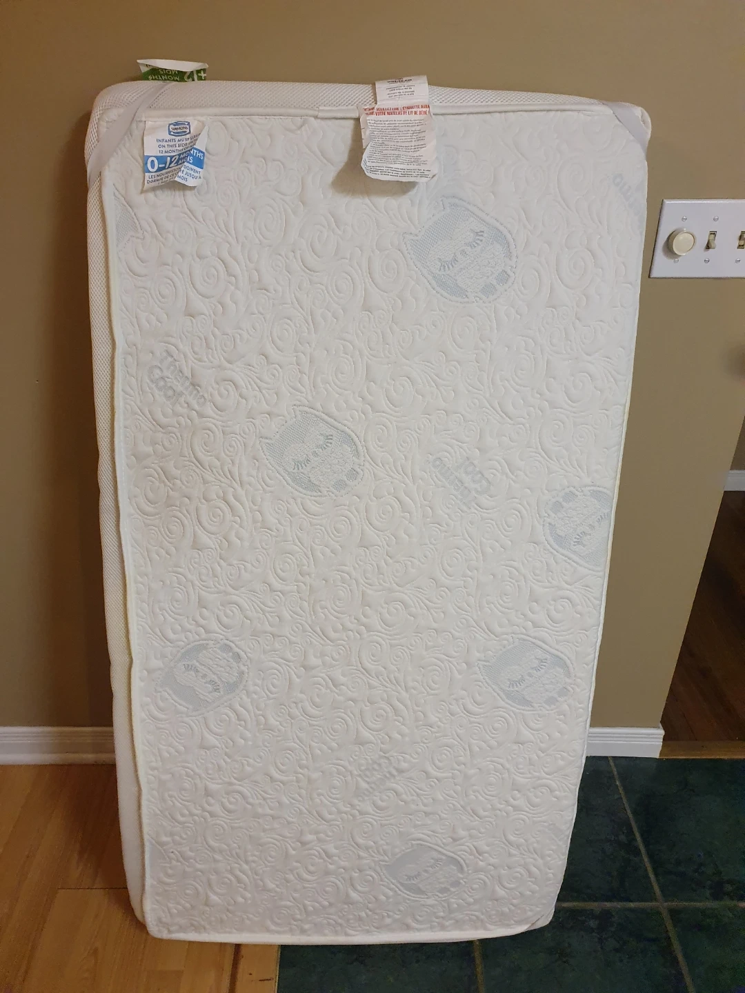 2481. Simmons Crib mattress (Double sided, firm side for 0-12 month, soft side for over 12 month) 2. Changing pad 3. Breast feeding pillow Free Please bring all together (No split) No refund