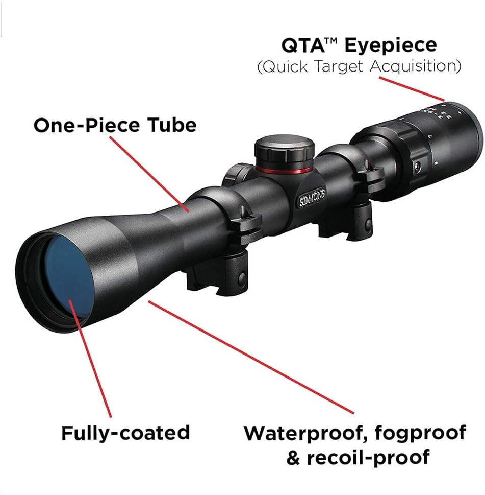 15Fully coated high-quality optical glass for bright, sharp images and high contrast Simmons .22 Mag TruPlex Reticle Rimfire Riflescope with Ring, 3-9x32mm (Matte) Fully coated high-quality optical glass for bright, sharp images and high contrast Waterproof, fogproof and shockproof High-quality optical glass and fully-coated optics deliver bright, sharp images HydroShield lens coating helps maintain a clear sight picture, regardless of weather conditions Simmons' SureGrip rubber surfaces for easy adusting in any shooting conditions Field of View (ft. @ 100 yds): 31.4/10.5