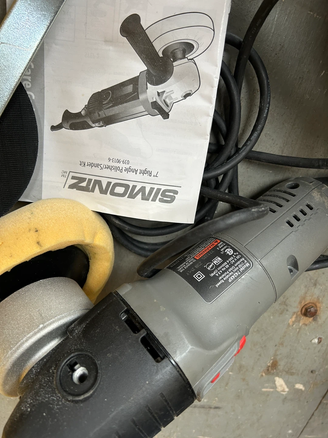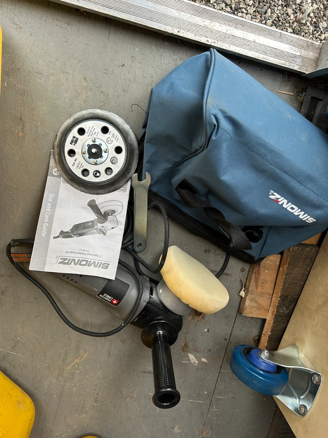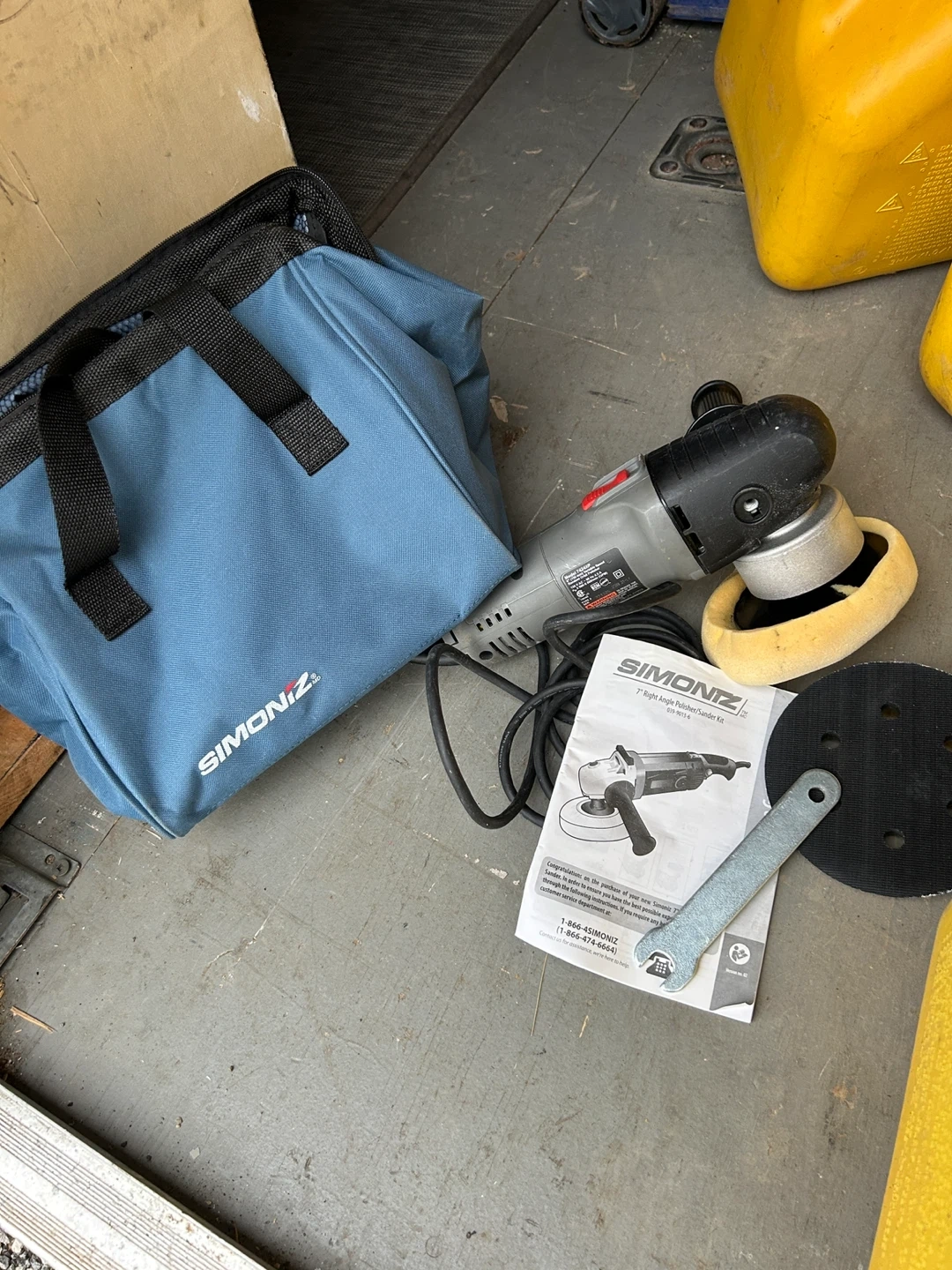 78Selling a Simoniz 7" Right Angle Polisher/Sander Kit! Comes with all the pieces shown in the photos, including the carrying bag