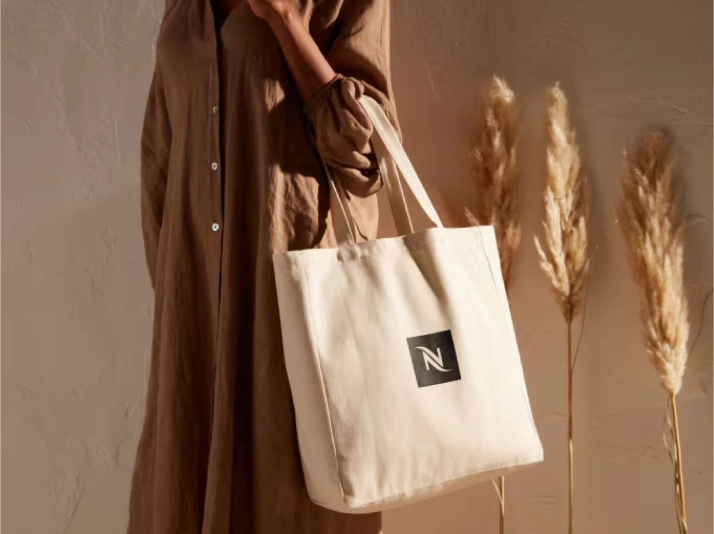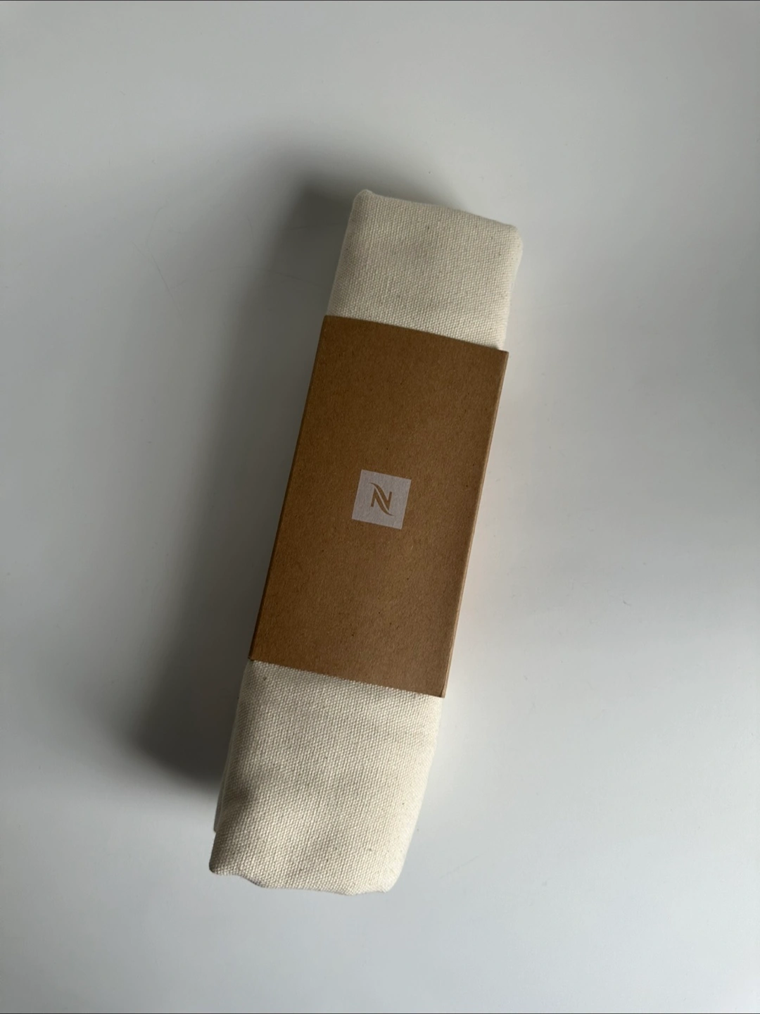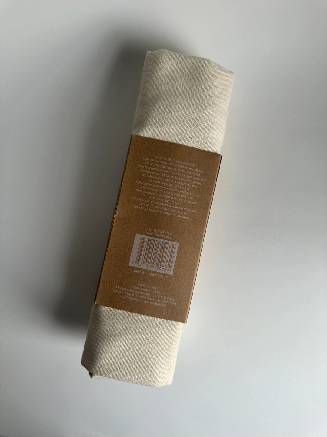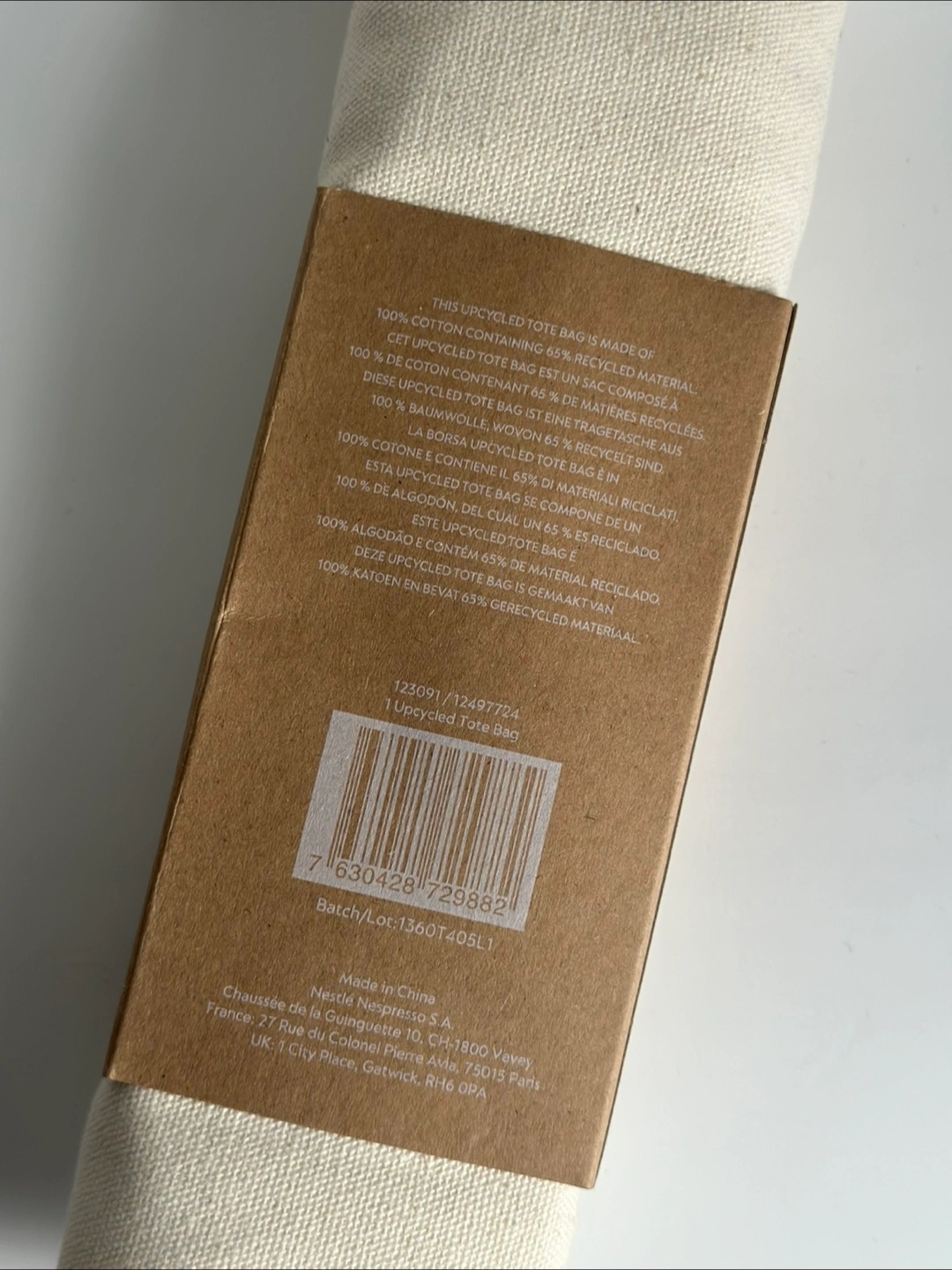 564A nice, neutral-coloured tote bag. Made of what appears to be cotton. The bag is upcycled and includes a Nespresso brand logo. It can be a great companion for your next trip to the grocery store.