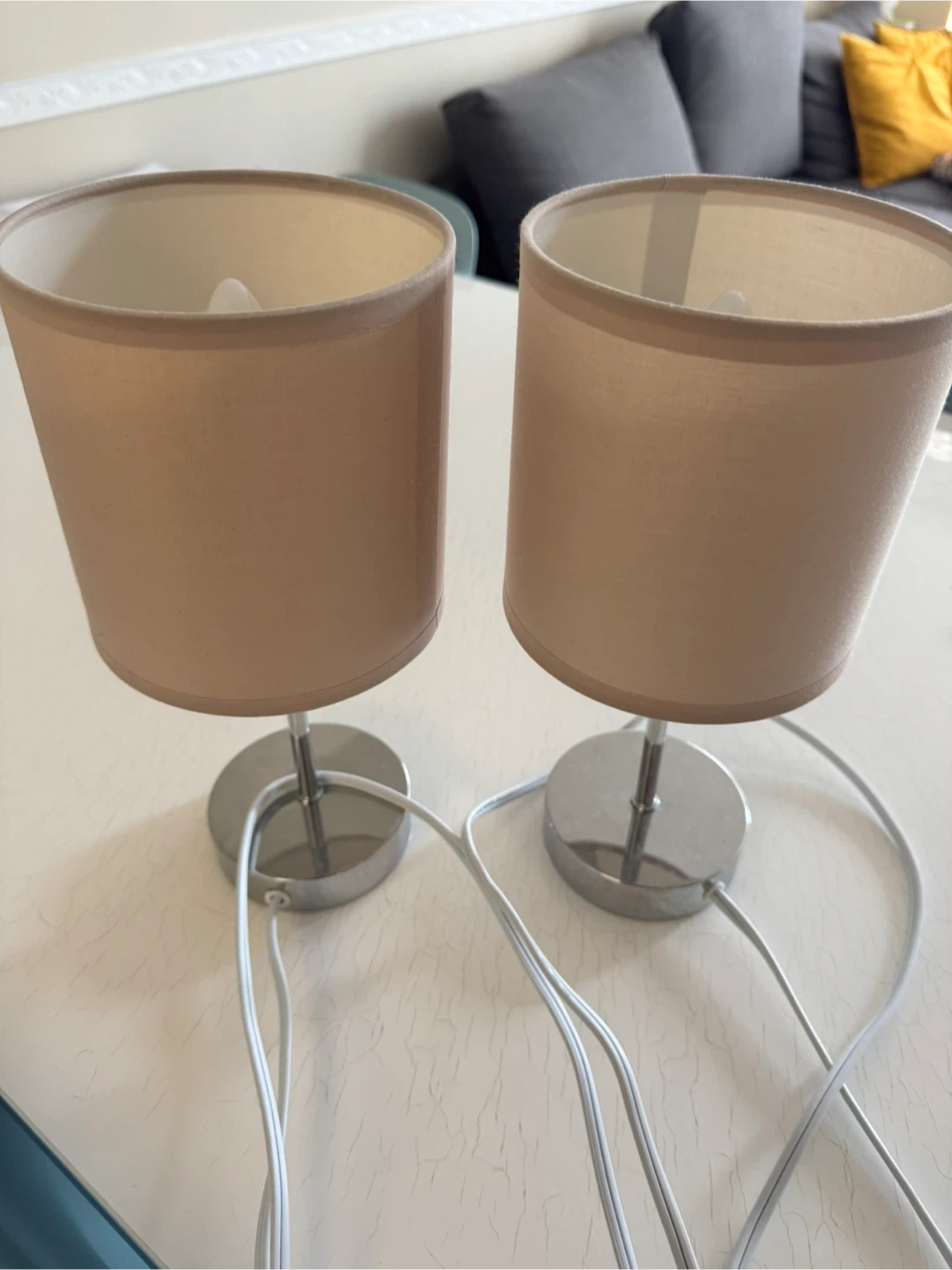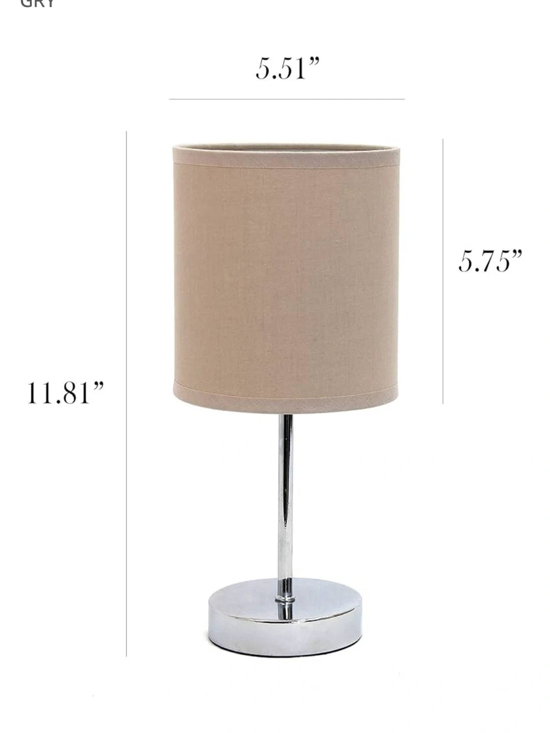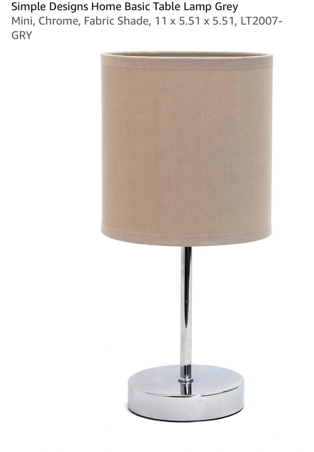 65Selling a set of two Simple Designs Home Basic table lamps! They're in great shape and would look lovely in any room. The dimensions are approximately 11.81" tall with a 5.51" shade diameter. The shade is a neutral fabric and the base is chrome. The price listed is for both lamps, selling as a set only.