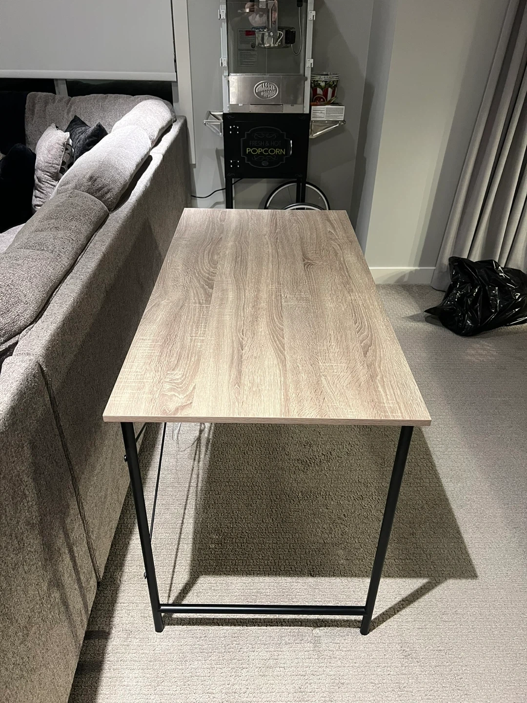 Selling a simple desk with black metal legs and a light wood-look top. It's in great condition and perfect for a home office or study space. It's sturdy and already assembled.