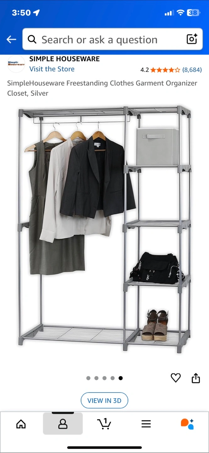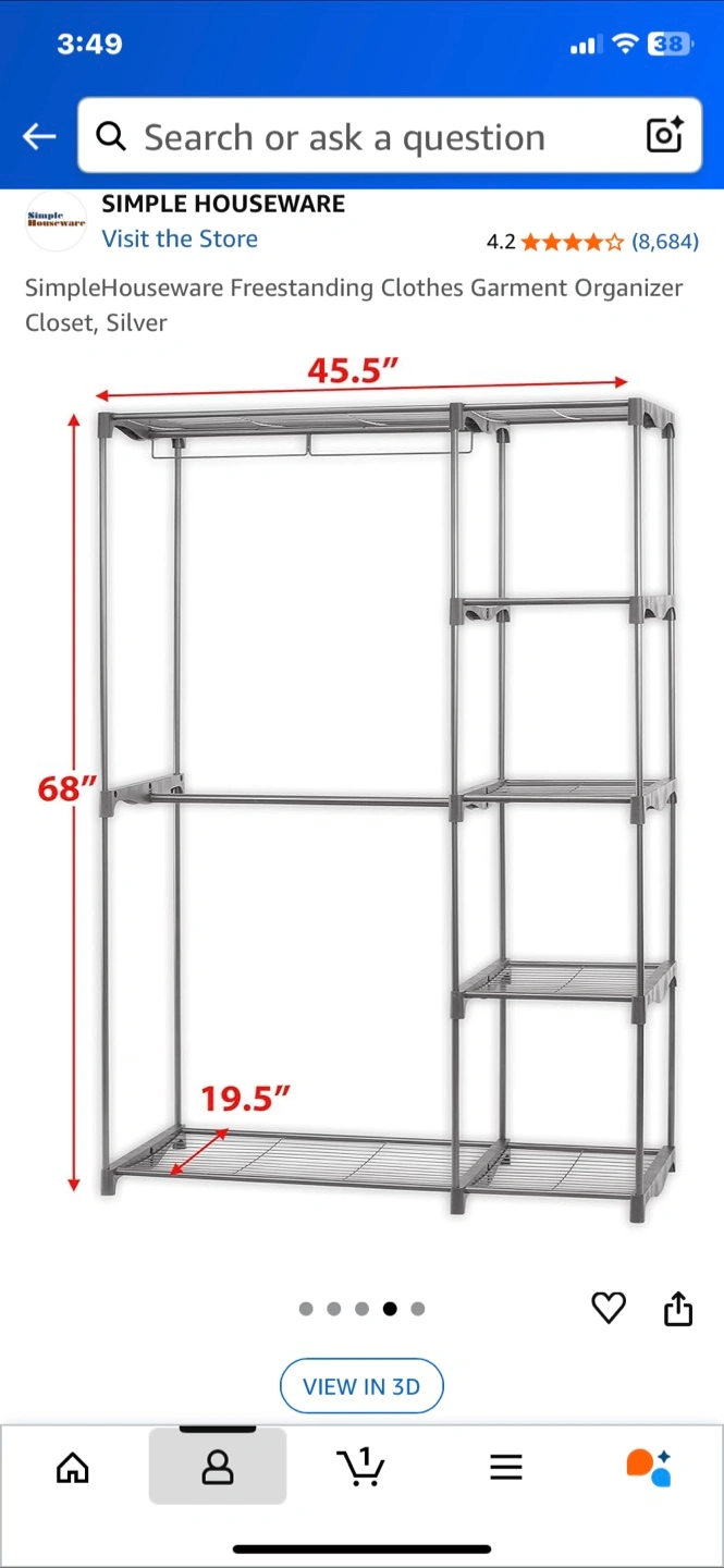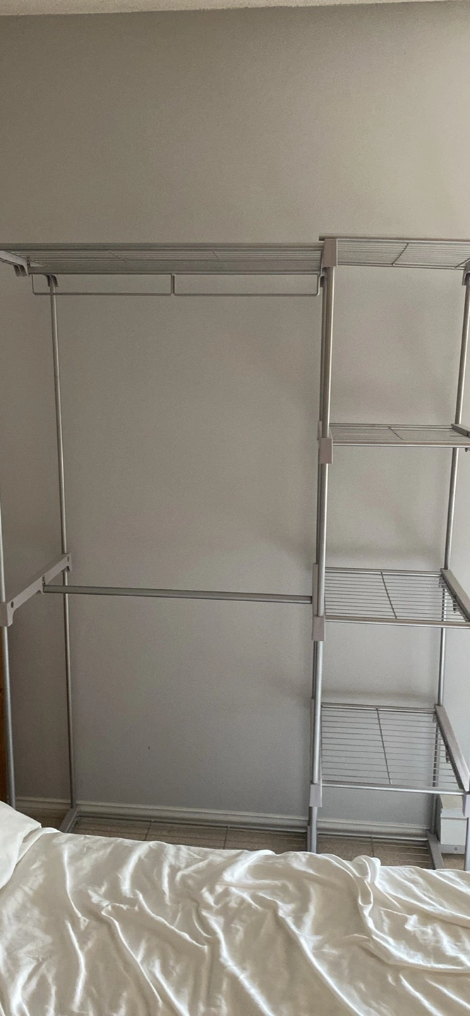 10Selling a Simple Houseware freestanding clothes garment organizer closet in silver. It's in great shape and ready to help organize your space! The dimensions are approximately 45.5" wide, 68" high, and 19.5" deep.