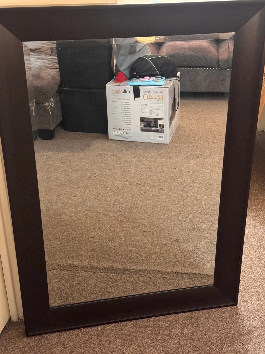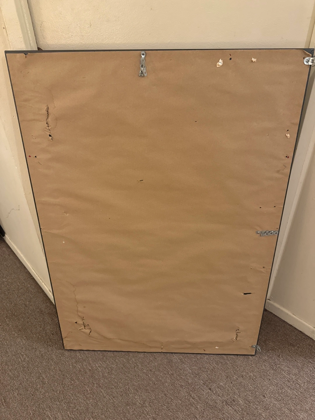573Selling a horizontal mirror. It's in good condition. Length: approx. 42 inches Width: 1.5 inches Height: approx. 30.5 inches *the mirror only has hooks to be hung horizontally. It cannot be hung vertically as seen in the pictures. Pickup only
