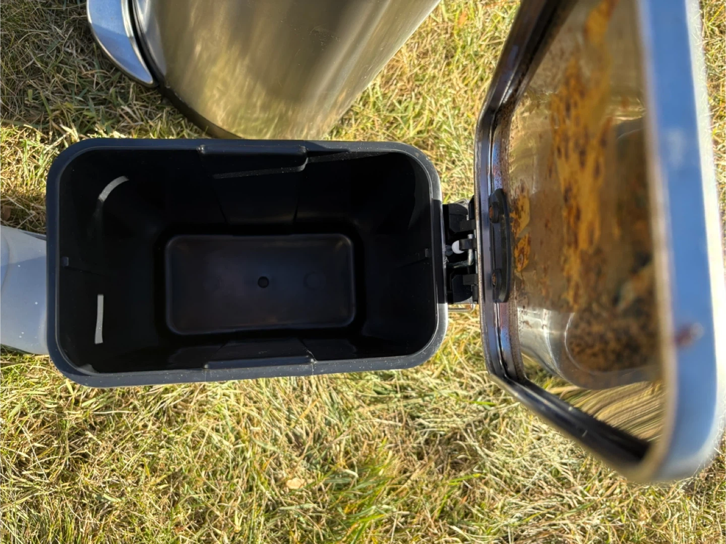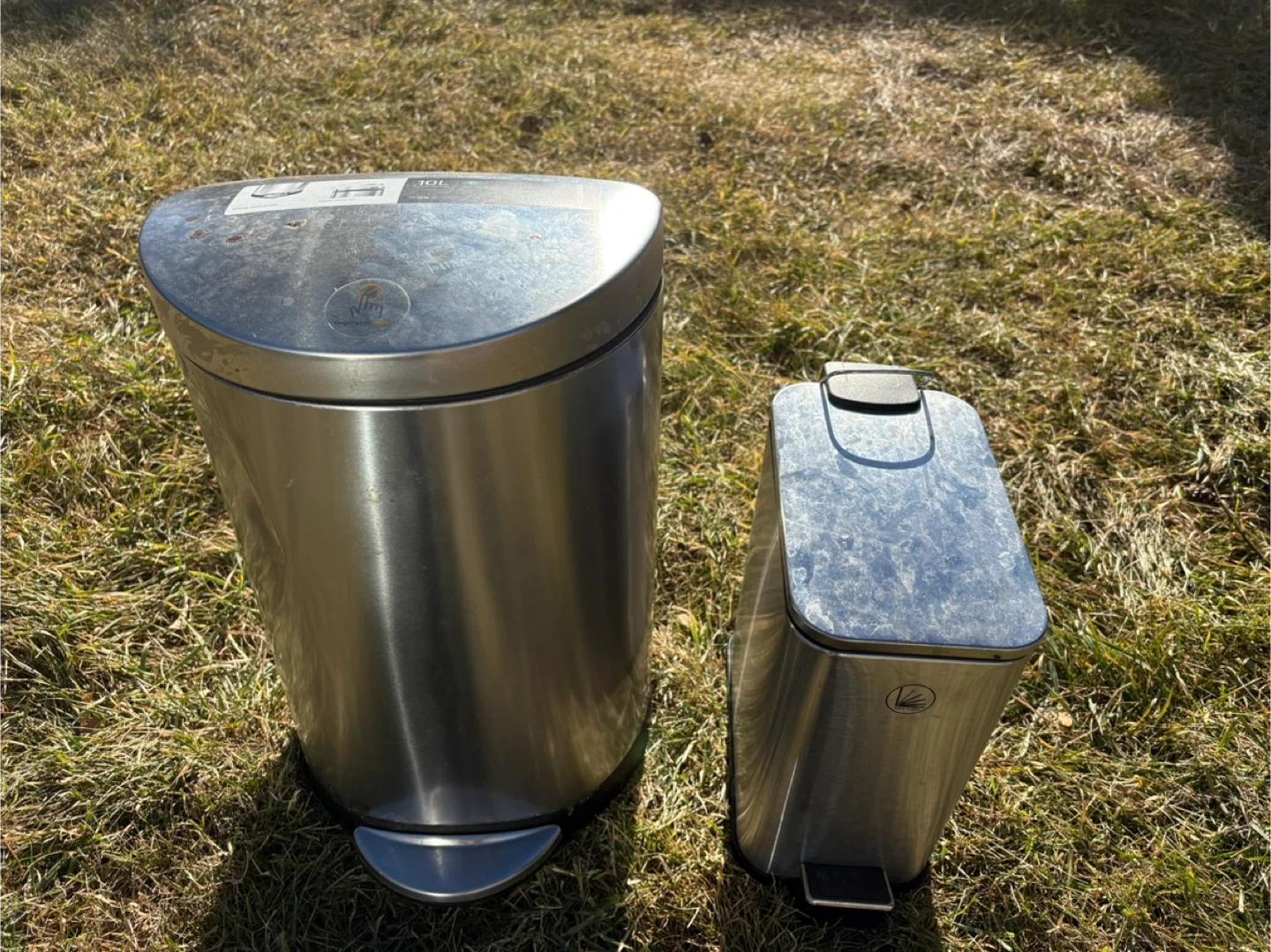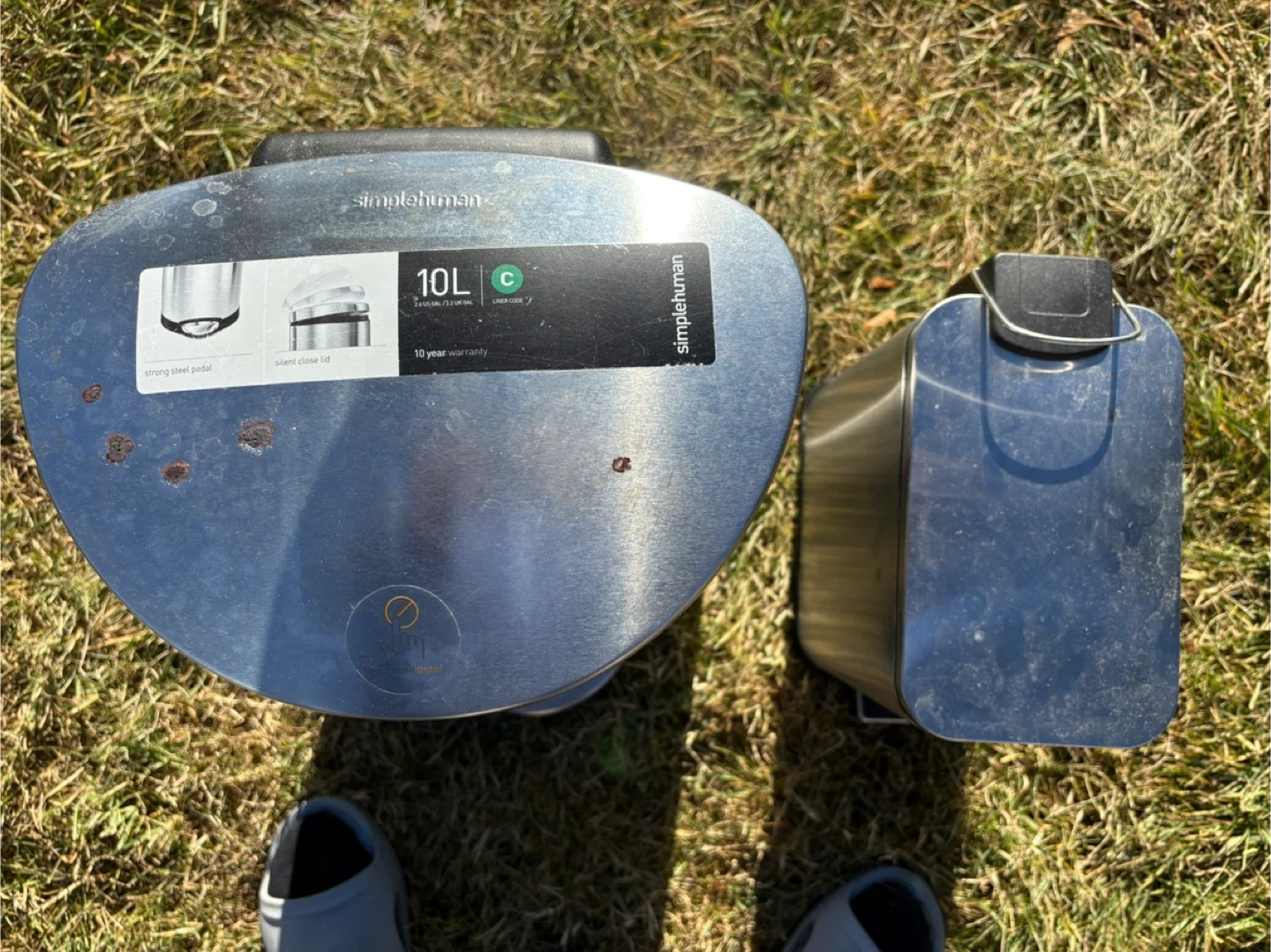 59Selling a Simplehuman trash can combo. Includes a larger, round trash can and a smaller, rectangular one. Both are in used condition and show signs of wear. The larger one is 15$, the smaller one is 10$, Pick up at Morley trail NW