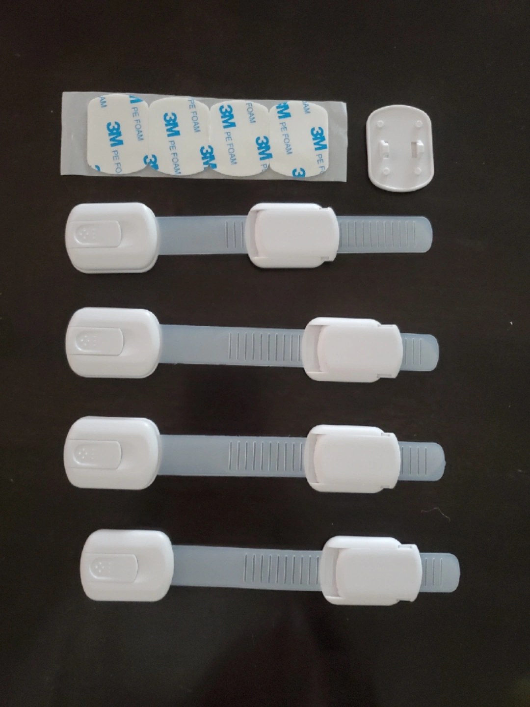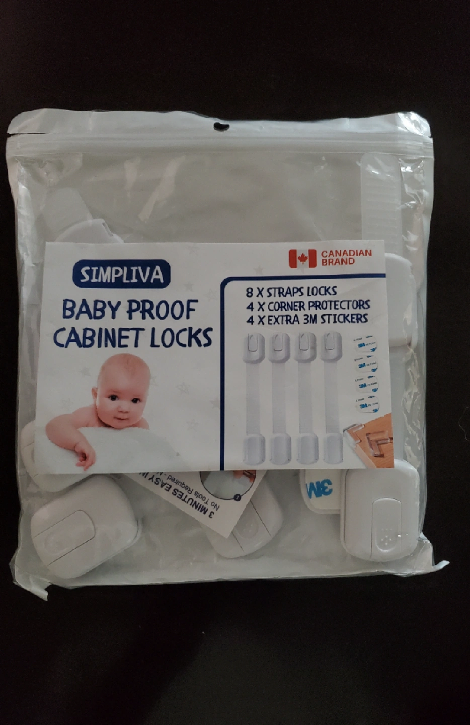 I'm selling a set of Simpliva baby proof cabinet locks. Includes 4 straps locks, 4 extra 3M stickers. Keep your little one safe with these easy-to-install locks. Used some of the straps, no longer need the rest.